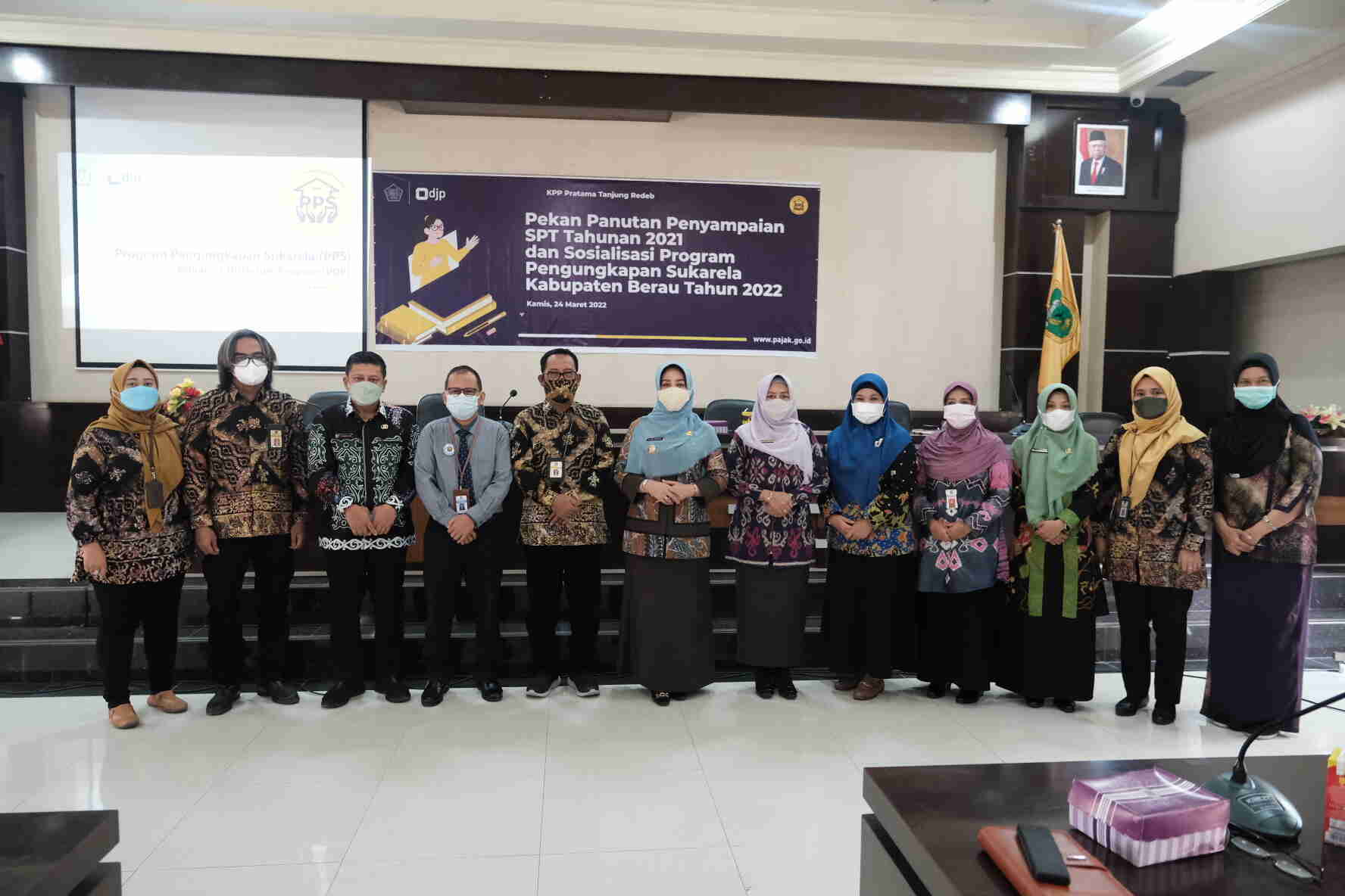 Kantor Pelayanan Pajak (KPP) Pratama Tanjung Redeb menyelenggarakan Sosialisasi Program Pengungkapan Sukarela di Ruang Sangalaki Kantor Bupati Berau Kab. Berau (Kamis, 24/03). Peserta dalam kegiatan ini adalah para Pejabat Organisasi Pemerintah Daerah di Lingkungan Kabupaten Berau.