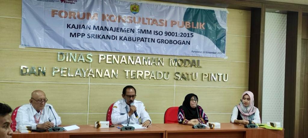Kepala Kantor Pelayanan, Penyuluhan, dan Konsultasi Perpajakan (KP2KP) Purwodadi menghadiri Forum Konsultasi Publik dalam rangka Surveilans ISO 9001:2015 Mall Pelayanan Publik (MPP) Srikandi Kabupaten Grobogan di Ruang Rapat Lantai 3 MPP Grobogan, Jln. Paramedis Komplek Simpang Lima Purwodadi (Rabu, 8/11).