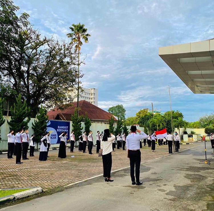 Kantor Wilayah (Kanwil) Direktorat Jenderal Pajak (DJP) Sumatera Utara I bersama unit kerja di lingkungan Kanwil DJP Sumatera Utara I melaksanakan upacara peringatan Hari Pajak di lapangan parkir Gedung Kanwil DJP Sumatera Utara I (Selasa, 14/7).