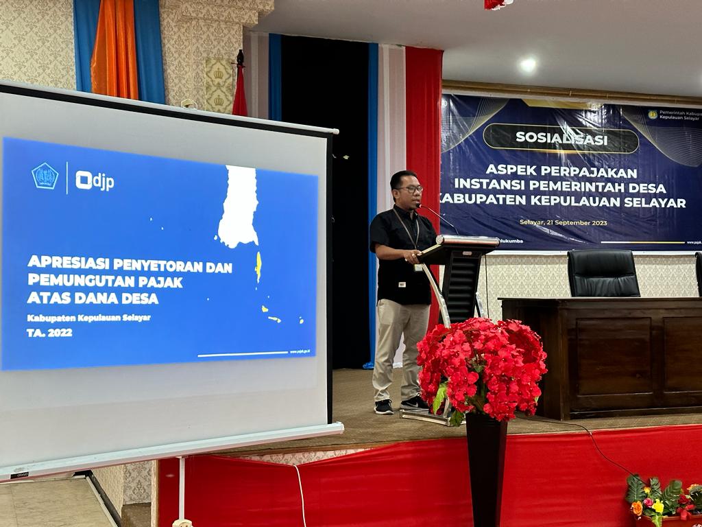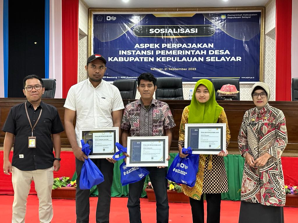 Kantor Pelayanan Pajak (KPP) Pratama Bulukumba memberikan penghargaan kepada desa yang memiliki rasio tertinggi atas penyetoran pajak pada tahun anggaran 2022 di Ruang Pola Kantor Bupati Kepulauan Selayar, Kecamatan Benteng, Kabupaten Kepulauan Selayar (Kamis, 21/9).
