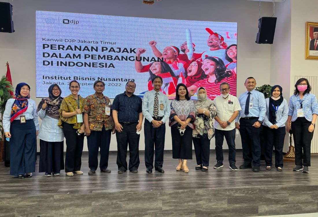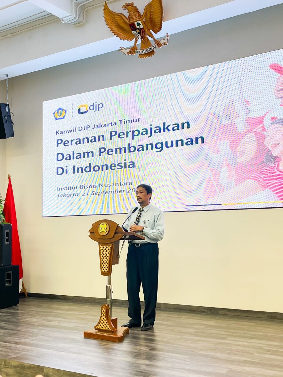 Kepala Kantor Wilayah DJP Jakarta Timur Muhammad Ismiransyah M. Zain menjadi salah satu narasumber dalam kegiatan Pengenalan Kehidupan Kampus bagi Mahasiswa Baru (PKKMB) Tahun 2022 yang diselenggarakan oleh Institut Bisnis Nusantara (IBN) di Aula Lantai 9 Gedung Pulomas Office, Jakarta Timur (Rabu, 21/9).