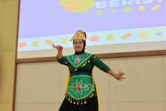 Yusria Agustina Ayunegara (18), mempersembahkan Tari Lenggang Nyai di hadapan 50 peserta Lokakarya Pengembangan Kompetensi Wirausaha Tuli. Pelajar asal Bogor yang akrab disapa Ayu tersebut mengenakan kebaya berwarna hijau, rok berwarna hitam, mahkota berwarna kuning emas, dan seutas pita merah yang menghiasi sanggulnya.