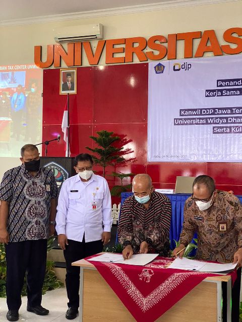 Luky menyampaikan bahwa peresmian Tax Center yang diselenggarakan di Gedung Rektorat Unwidha ini merupakan wujud komitmen Direktorat Jenderal Pajak (DJP) dalam menyediakan wadah pengkajian, penelitian, dan sosialisasi perpajakan di lingkungan civitas akademika. Selain menjadi saksi penandatanganan kesepakatan bersama, pihak KPP Pratama Klaten akan menjadi unit kerja yang mengampu Tax Center Unwidha.
