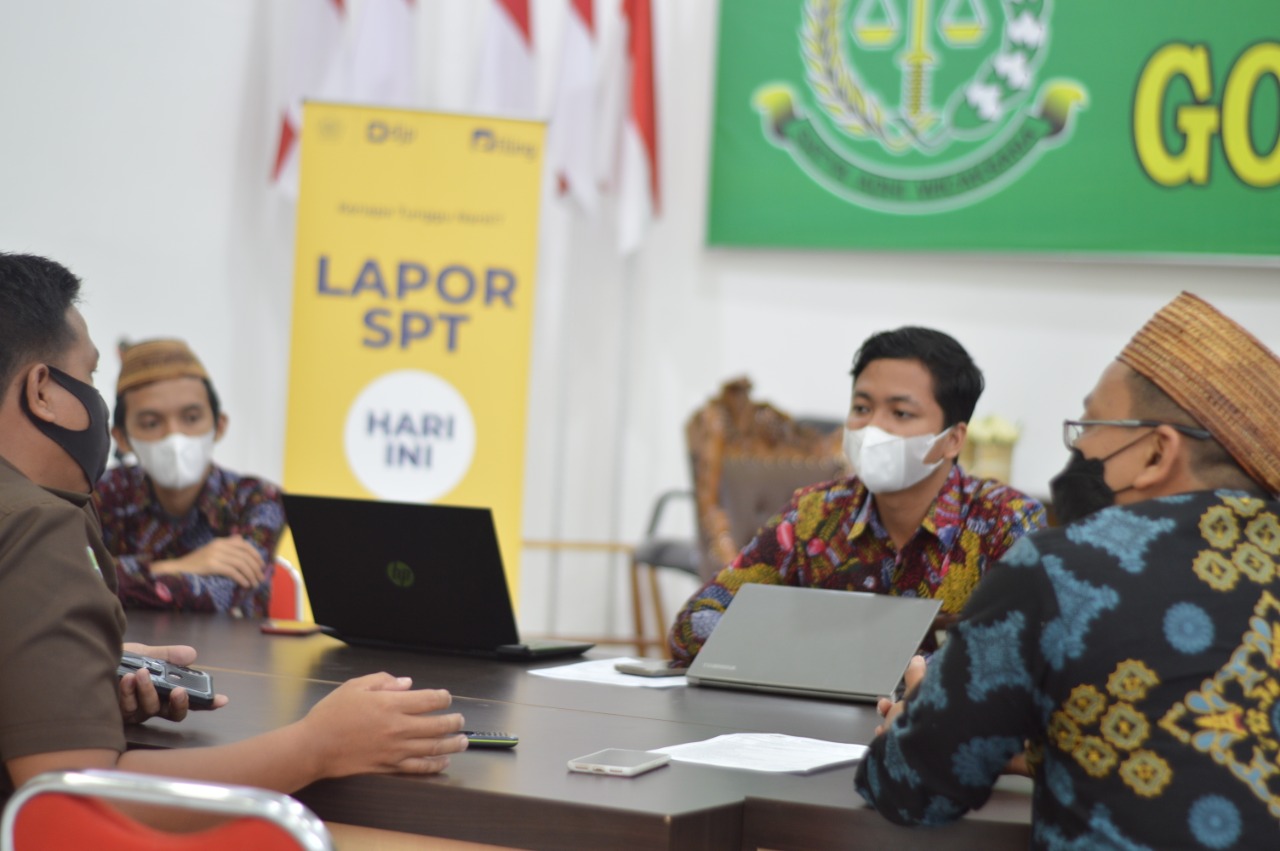 Kantor Pelayanan Penyuluhan dan Konsultasi Perpajakan Limboto menerima undangan Kejaksaan Negeri Kabupaten Gorontalo Utara terkait asistensi pelaporan Surat Pemberitahuan (SPT) Tahunan Pajak Penghasilan (PPh) Wajib Pajak Orang Pribadi bertempat di Aula Gedung Kejari Gorut, kabupaten Gorontalo Utara (Selasa, 8/2).