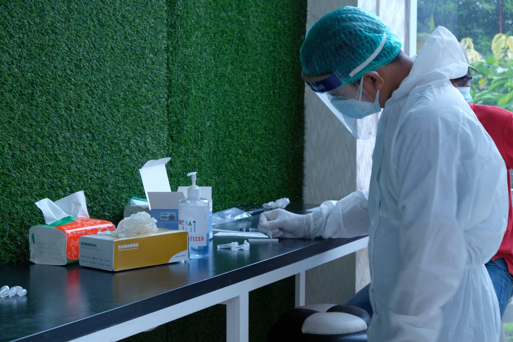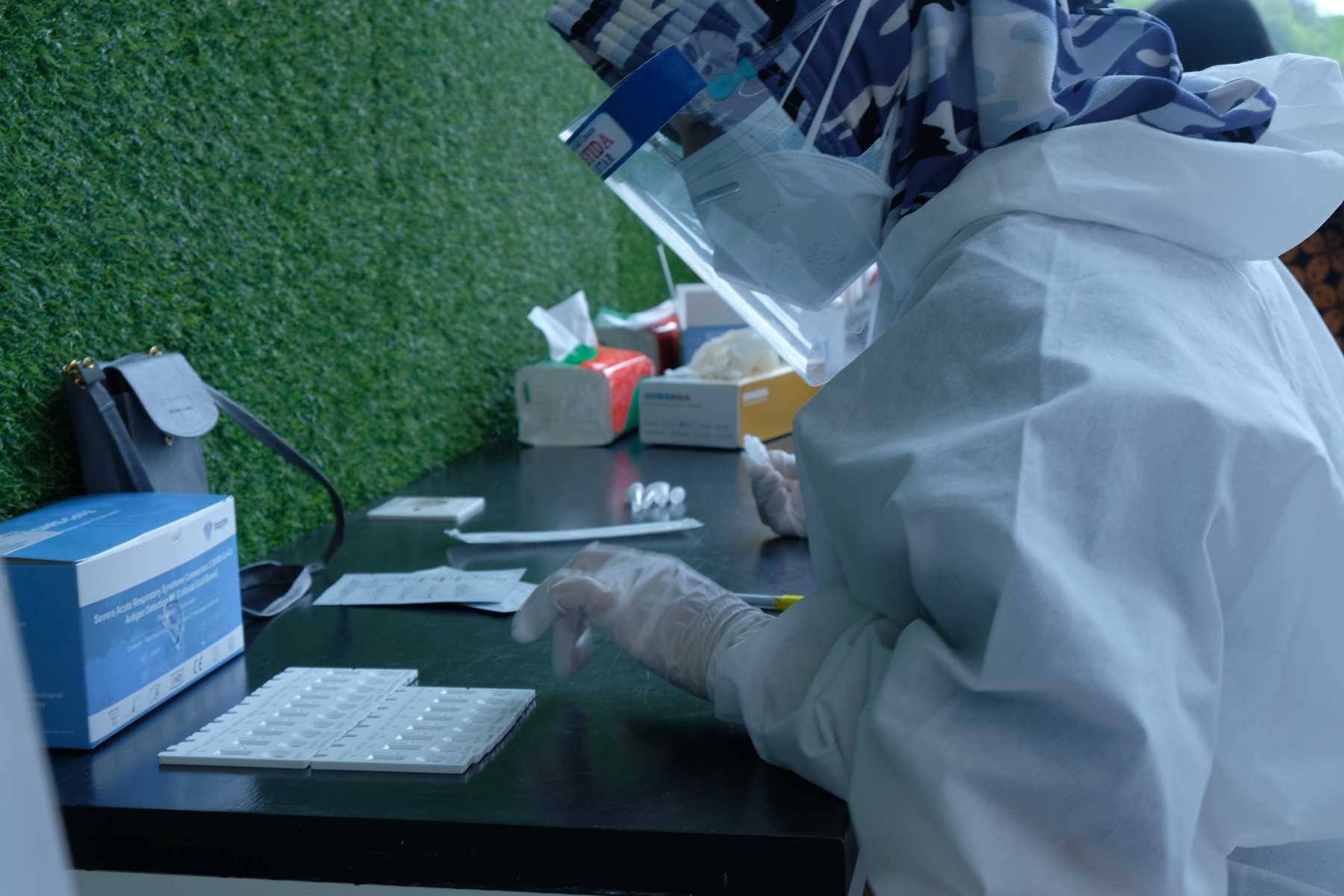 Kanwil DJP Sumatera Utara II mengadakan tes cepat (rapid test) antigen kepada seluruh pegawai di ruang masuk utama Kanwil DJP Sumatera Utara II, Pematang Siantar (Selasa, 27/4).
