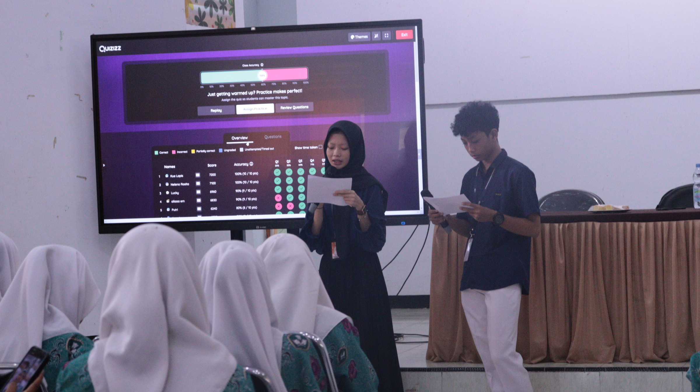 Untuk menjaga semangat peserta, sesi materi diselingi dengan kuis dan permainan interaktif. "Siapa yang bisa menjawab pertanyaan ini dengan benar akan mendapatkan hadiah menarik!" ucap Nadiyah. Beberapa siswa tampak mengangkat tangan, berlomba menjawab pertanyaan yang diberikan.