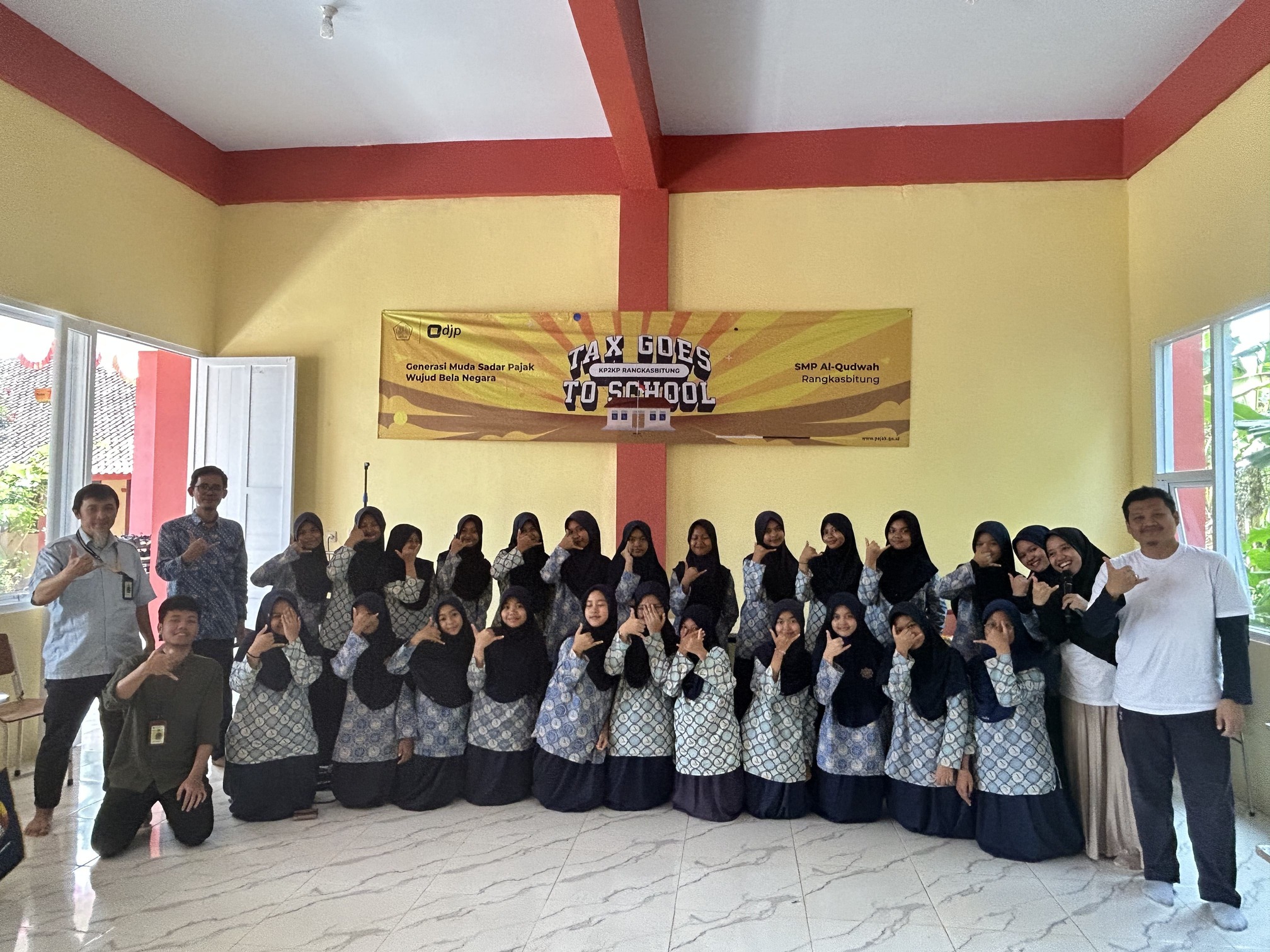 Kantor Pelayanan, Penyuluhan dan Konsultasi Perpajakan (KP2KP Rangkasbitung) bekerja sama dengan Asisten Penyuluh Kantor Pelayanan Pajak (KPP) Pratama Pandeglang dalam mengunjungi SMP Al-Qudwah di Jalan Maulana Hasanudin No.41, Cilangkap, Kecamatan Kalanganyar, Kabupaten Lebak, Banten (Kamis, 10/8). Kegiatan ini dilaksanakan dalam rangka melaksanakan kegiatan Tax Goes To School tahun 2023.