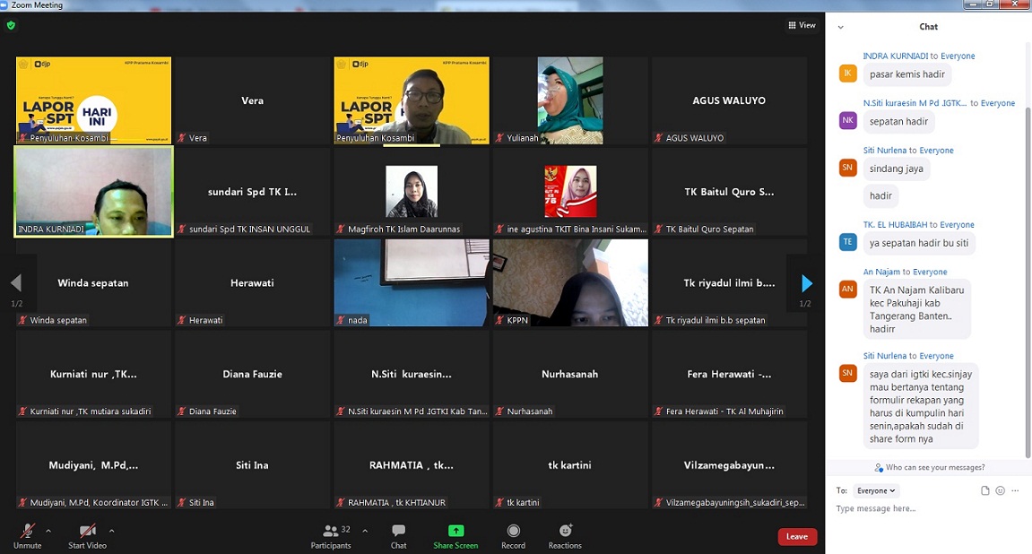 Kelas pajak ini diselenggarakan secara daring melalui aplikasi zoom meeting untuk membantu yayasan atau lembaga yang masih mengalami kesulitan dalam pelaporan SPT Tahunan PPh 1771.