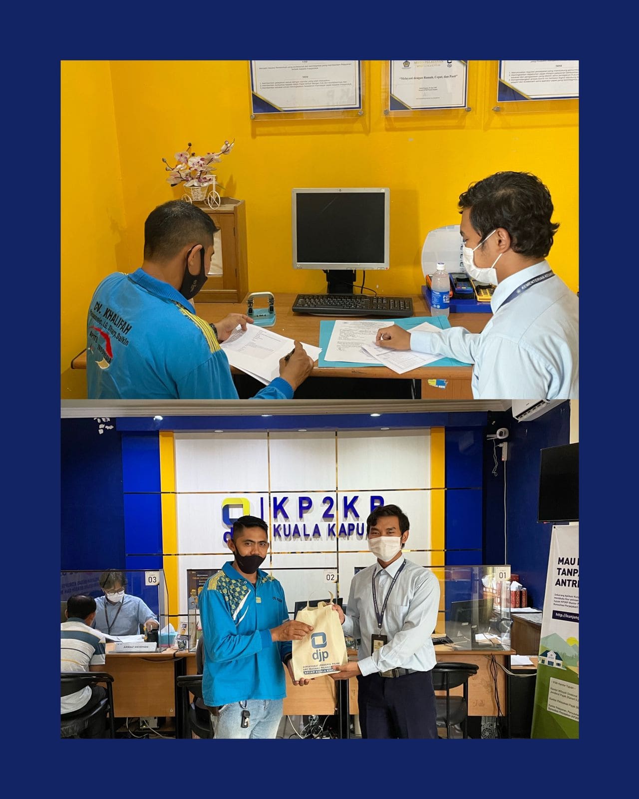 Kantor Pelayanan Penyuluhan dan Konsultasi Perpajakan (KP2KP) Kuala Kapuas menggelar edukasi perpajakan one-on-one kepada beberapa wajib pajak kewajiban perpajakannya di Kab. Kuala Kapuas (Senin, 13/06). Edukasi ini berlangsung selama empat hari hingga Kamis, 16 Juni 2022.