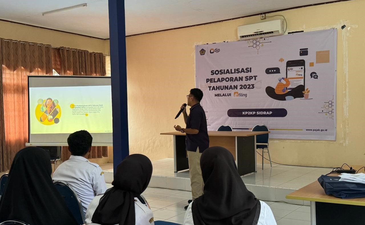 Pemaparan materi dilakukan secara langsung oleh Rio, pelaksana KP2KP Sidrap dengan pokok pembahasan mengenai tata cara pengisian SPT melalui e-Filling.Pelaksana KP2KP Sidrap Rio memaparkan materi terkait tata cara pelaporan SPT Tahunan melalui e-Filling. Rio menyampaikan bahwa wajib pajak ASN setelah mendapatkan bukti potong dari bendahara instansi masing-masing untuk segera melaporkan SPT Tahunan sebelum batas waktu pelaporan SPT pada tanggal 31 Maret 2024