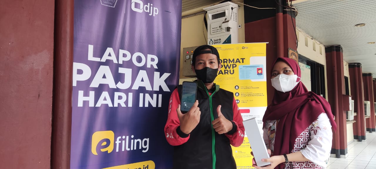Wajib pajak dibimbing petugas untuk melaporkan SPT melalui DJP Online. Wajib pajak dipandu juga untuk melakukan pemadanan NIK-NPWP