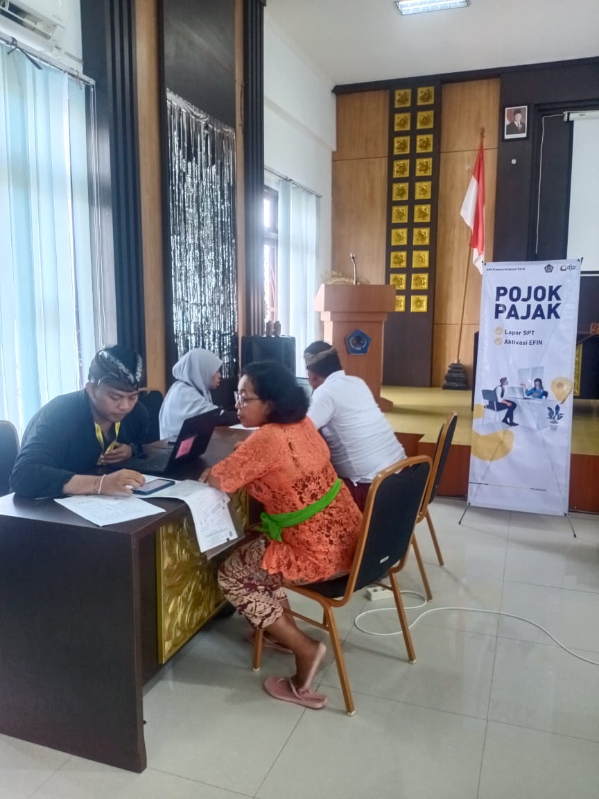 Kantor Pelayanan Pajak (KPP) Pratama Denpasar Barat kembali membuka layanan Pojok Pajak di Kantor Desa Tegal Kertha, Kota Denpasar (Kamis, 20/2). Layanan yang diberikan pada pojok pajak tersebut, antara lain asistensi pengisian dan pelaporan surat pemberitahuan (SPT) Tahunan serta aktivasi dan permintaan kembali Electronic Filing Identification Number (EFIN).