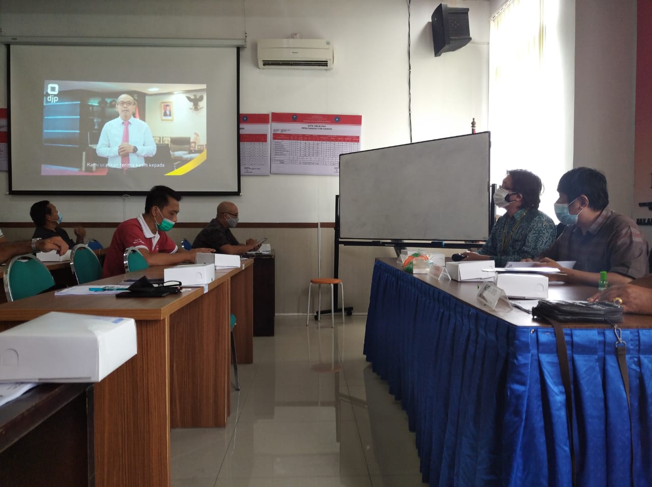 Pada kesempatan ini, narasumber menayangkan video Imbauan Integritas dari Direktur Jenderal Pajak Suryo Utomo, dilanjutkan dengan materi pokok terkait Peraturan Menteri Keuangan Nomor PMK-231/PMK.03/2019 tentang Tata Cara Pendaftaran dan Penghapusan Nomor Pokok Wajib Pajak, Pengukuran dan Pencabutan Pengukuhan Pengusaha Kena Pajak, serta Pemotongan dan/atau Pemungutan, Penyetoran dan Pelaporan Pajak bagi Instansi Pemerintah. Kegiatan pelantikan perpajakan ditutup dengan sesi tanya jawab seputar materi yang telah diberikan.