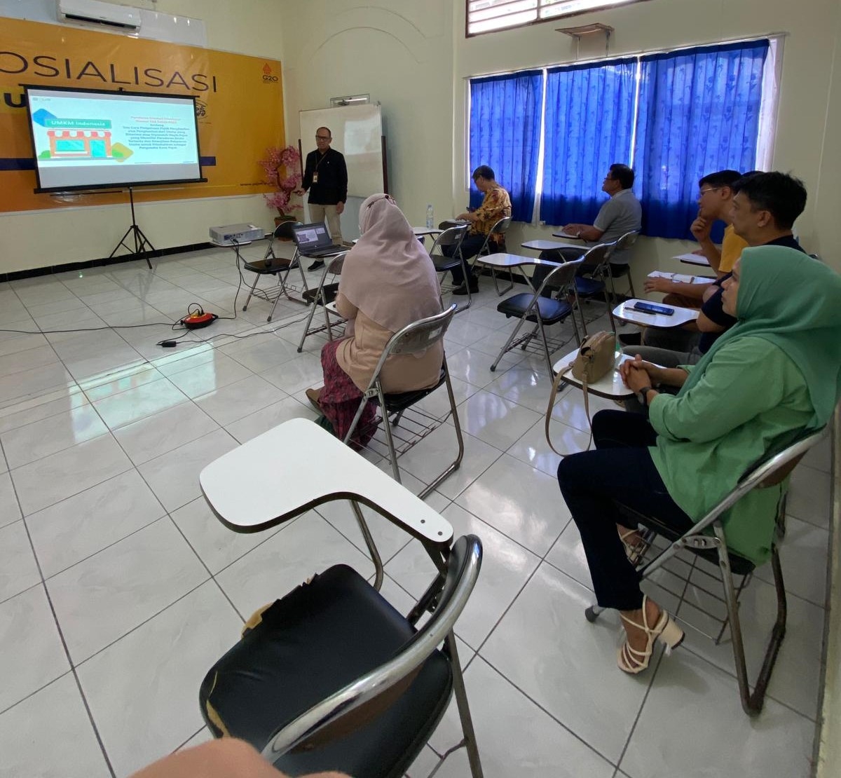 Peserta yang hadir dalam kelas pajak ini sebanyak 9 peserta. Dalam kegiatan ini, Rendra menyampaikan beberapa materi terkait PMK-164/2023 antara lain Objek dan Subjek Pajak, Tata cara pemberitahuan Wajib Pajak yang memilih dikenai Pajak Penghasilan Berdasarkan Ketentuan Umum Pajak Penghasilan, tata cara penghitungan Pajak Penghasilan, tata cara penyetoran, pemotongan atau pemungutan, dan pelaporan, Tata cara pengajuan permohonan dan penerbitan Surat Keterangan, Angsuran Pajak Penghasilan Pasal 25 dan Kewajiban pelaporan usaha untuk dikukuhkan sebagai Pengusaha Kena Pajak.