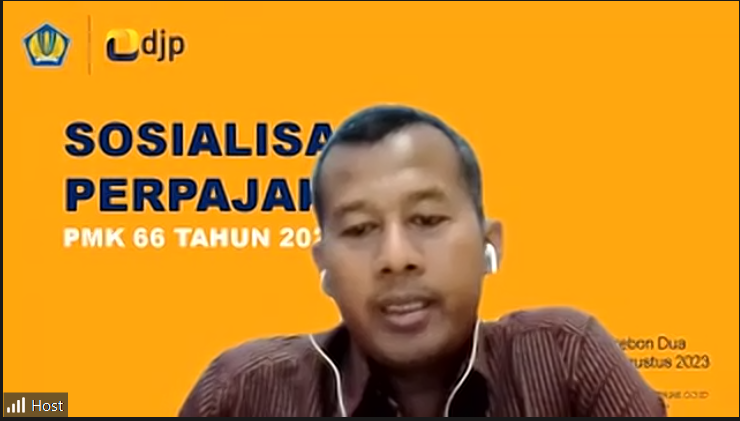 Kantor Pelayanan Pajak (KPP) Pratama Cirebon Dua mengadakan sosialisasi PMK Nomor 66 Tahun 2023 secara daring melalui media aplikasi Zoom Meeting di Cirebon, Jawa Barat (Selasa, 1/8). Sosialisasi dimulai pukul 09.00 WIB. Kegiatan ini diikuti oleh wajib pajak di wilayah Kabupaten Cirebon.