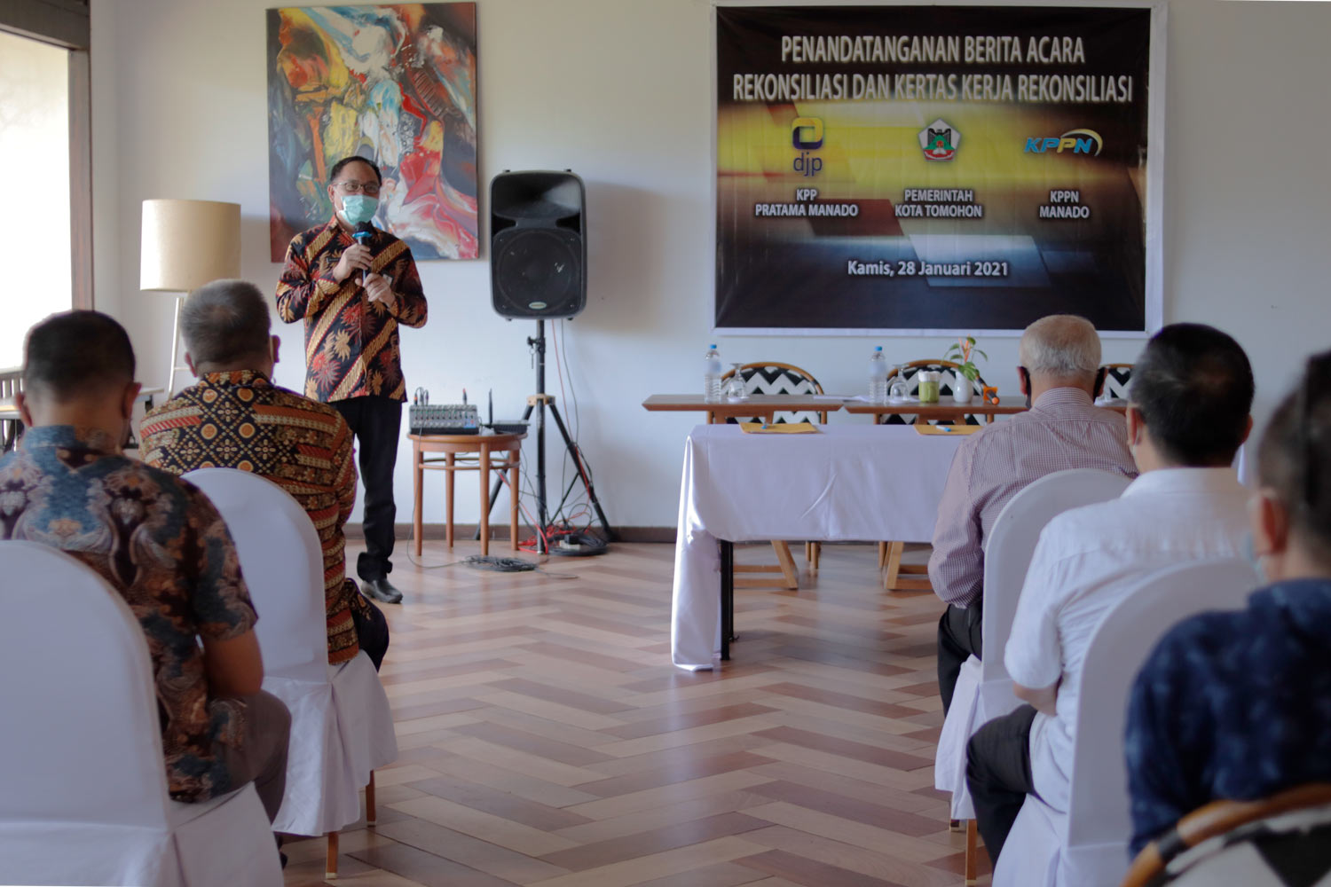 Kemenkeu dan Pemkot Tomohon menyatakan penandatanganan Berita acara dan Kertas Kerja Rekonsiliasi ini dilaksanakan untuk memastikan dana bagi hasil untuk Pemerintah Daerah Kota Tomohon yang akan disalurkan untuk kelancaran pembangunan dan pelayanan bagi masyarakat Kota Tomohon. Kegiatan ini dihadiri oleh Kepala KPP Pratama Manado Devyanus C.N. Polii, Kepala KPPN Manado Wayan Juwena, dan Kepala BPKPD Gerardus E. Mogi beserta jajarannya dengan tetap memperhatikan protokol kesehatan.
