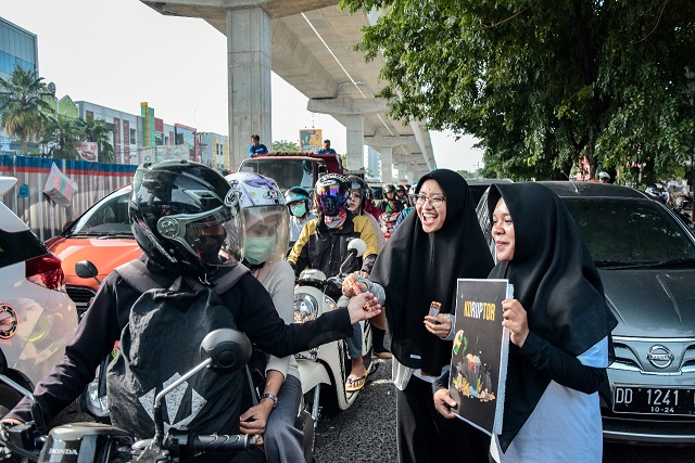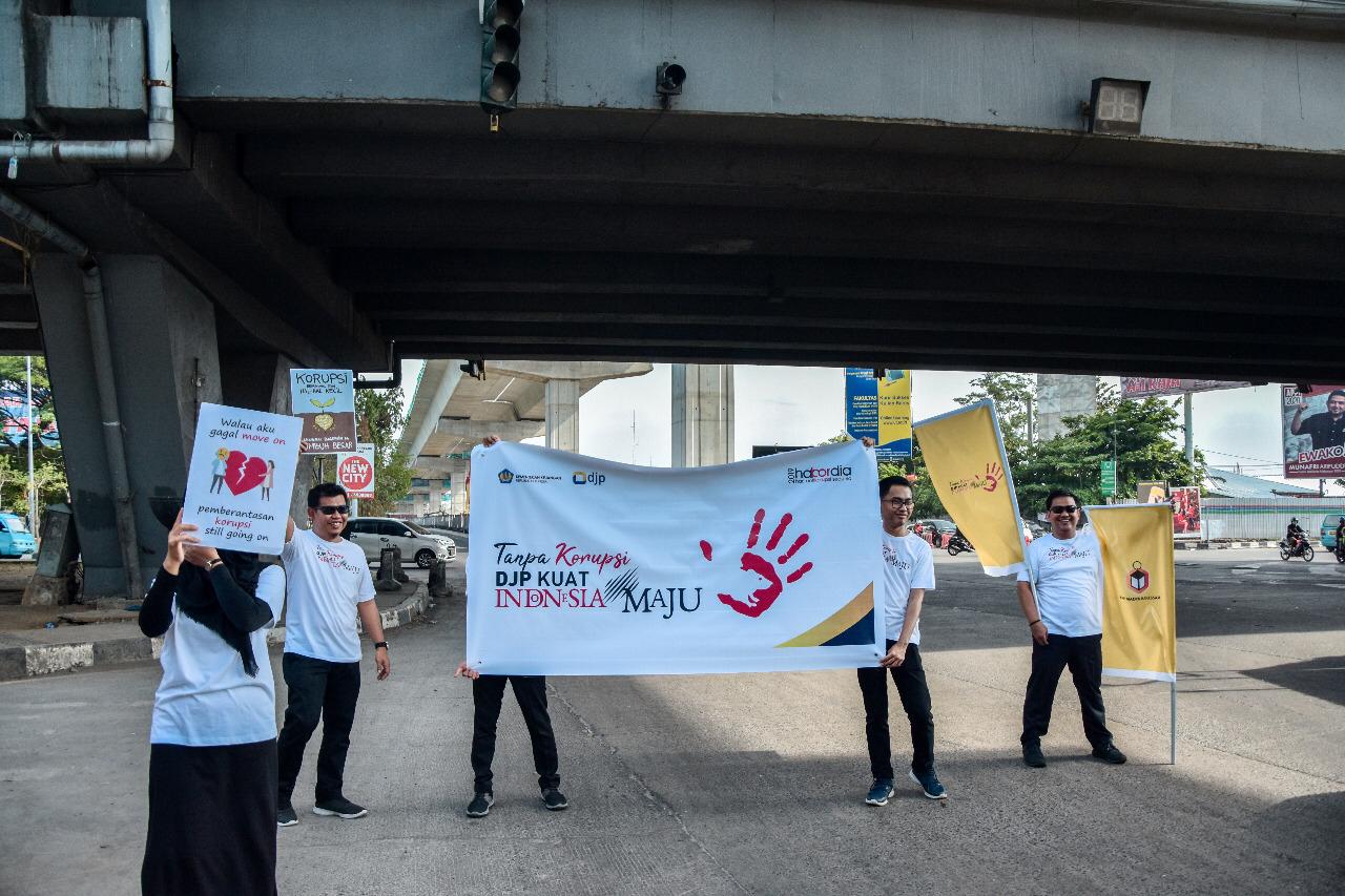 Kantor Pelayanan Pajak (KPP) Madya Makassar menyemarakkan peringatan Hari Antikorupsi Sedunia dengan mengadakan Kampanye Simpatik berlokasi di Jalan Pettarani, Kota Makassar (Jumat,13/12). Acara yang berlangsung selama hampir dua jam ini diisi dengan pembagian berbagai suvenir kepada para pengguna jalan serta menggaungkan semangat antikorupsi melalui poster unik dengan kalimat persuasif dalam memberantas tindakan korupsi.