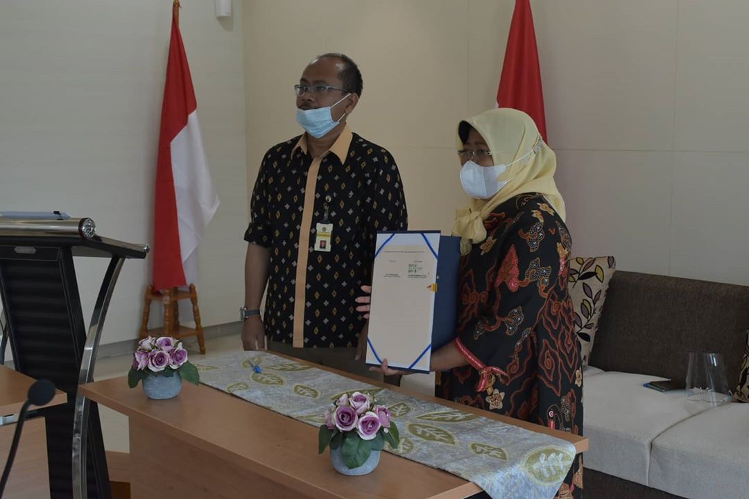 Kepala Kanwil DJP Jawa Barat III Catur Rini Widosari menandatangani Perjanjian Kerja Sama (PKS) dengan Universitas Ibn Khaldun Bogor mengenai Tax Center secara daring melalui telewicara di Aula Gedung Kanwil (Jumat, 25/9).