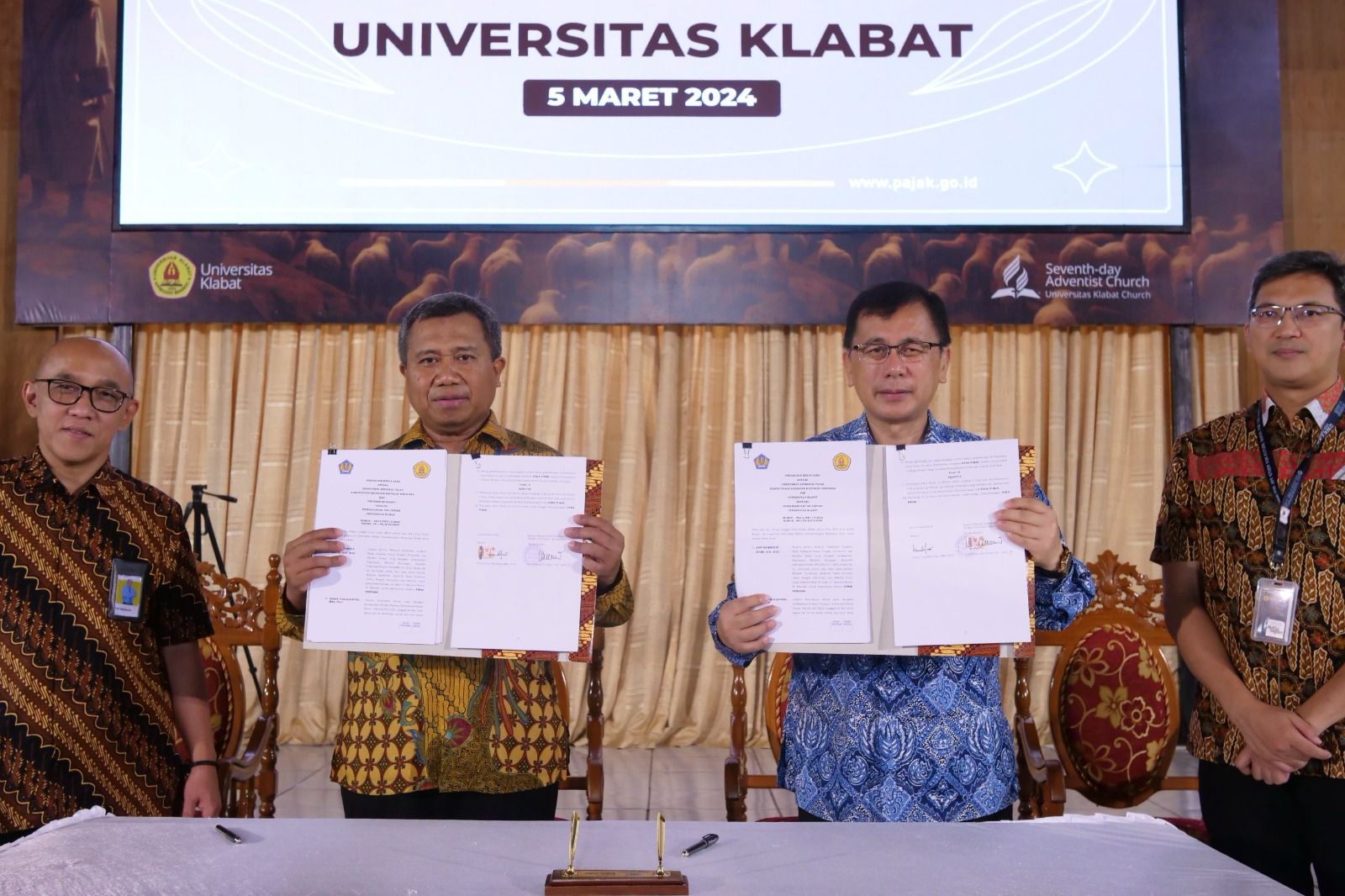 Kepala Kantor Wilayah DJP Sulawesi Utara, Tengah, Gorontalo, dan Maluku Utara (Kanwil DJP Suluttenggomalut) Arif Mahmudin Zuhri dan Rektor Universitas Klabat Pdt. Danny I. Rantung, MBA, PhD., telah melakukan penandatanganan Perpanjangan Perjanjian Kerja Sama (PKS) Tax Center. Penandatanganan ini berlangsung di Pioneer Chapel Universitas Klabat, Airmadidi, Minaha Usata, Sulawesi Utara (Selasa, 5/3).