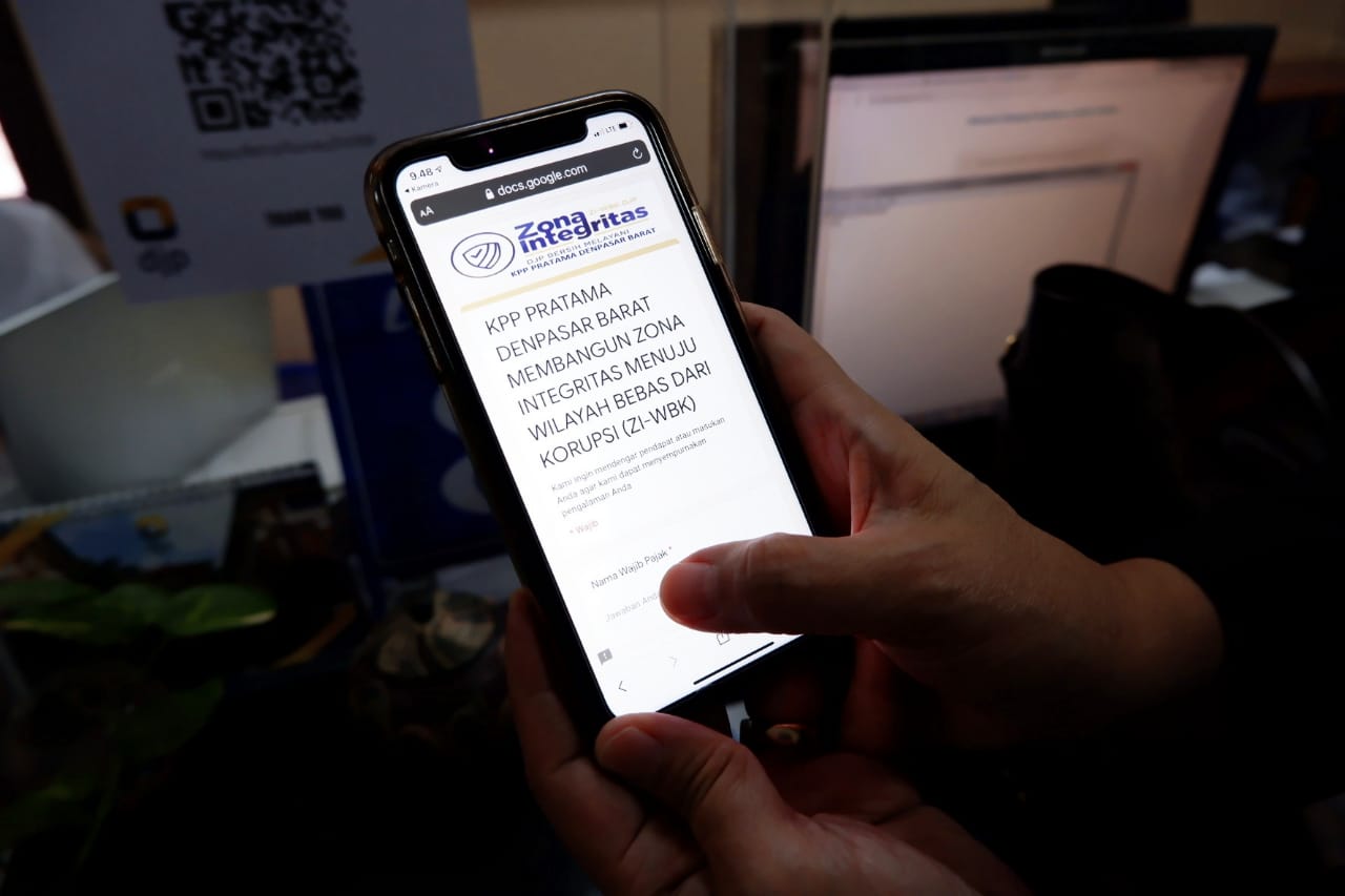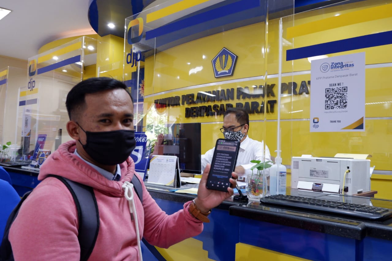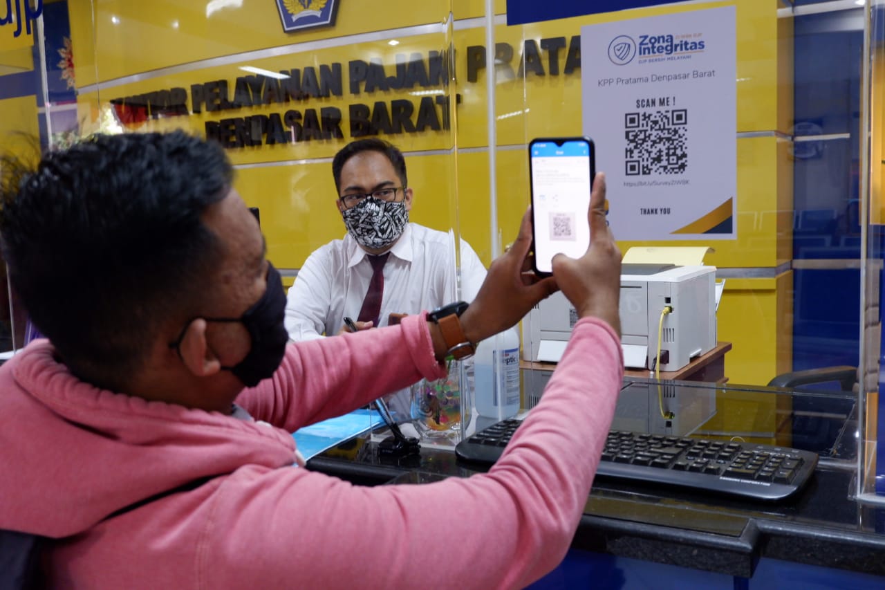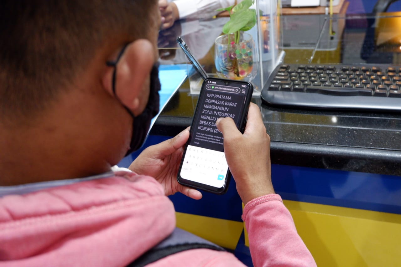 Petugas Kantor Pelayanan Pajak (KPP) Pratama Denpasar Barat mulai melaksanakan survei kepuasan layanan secara elektronik di loket Tempat Pelayanan Terpadu (Senin, 7/12). Survei kepuasan layanan ini menjadi satu bagian dengan survei pengenalan Zona Integritas menuju Wilayah Bebas dari Korupsi (ZIWBK) di lingkungan KPP Pratama Denpasar Barat.
