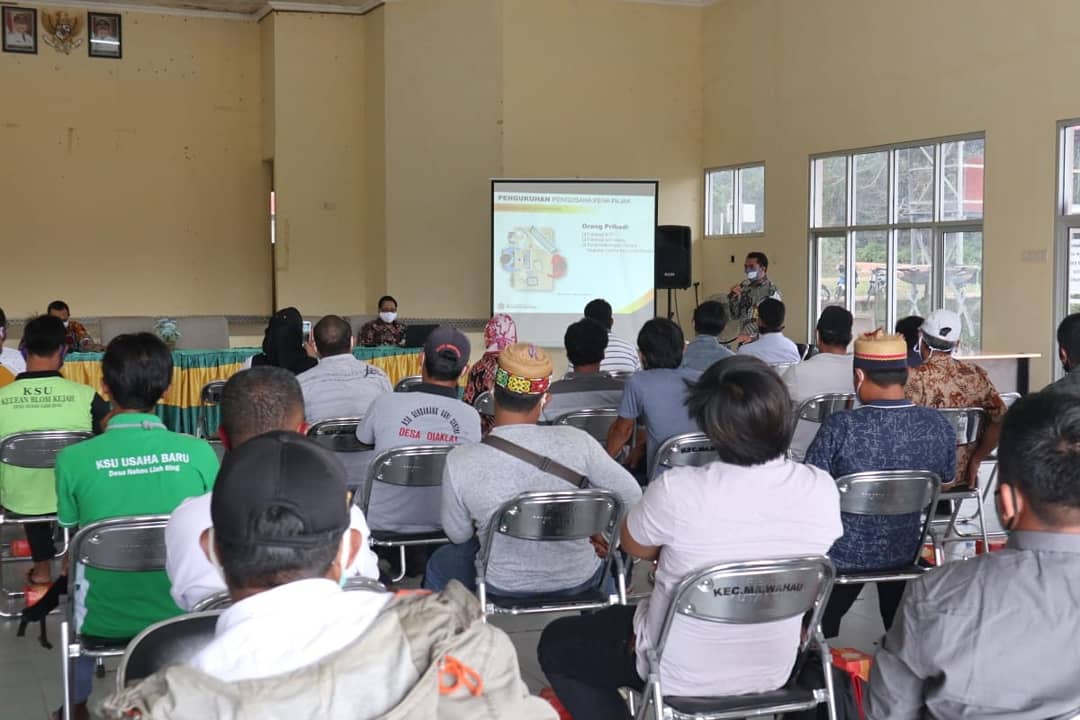Masih dengan tema yang sama “Bersama Membangun Negeri”, Kantor Pelayanan Pajak (KPP) Pratama Bontang kembali adakan sosialisasi perpajakan di Ruang Pertemuan Umum Kantor Kecamatan Muara Wahau, Kabupaten Kutai Timur (Rabu, 12/8). Dihadiri 33 Pengurus Koperasi kelapa sawit, Koperasi jasa angkut dan sewa serta perwakilan tim Corporate Social Responsibility (CSR) PT. Dharma Satya Nusantara, kegiatan ini dikemas dengan bincang dan diskusi secara santai dengan tetap memperhatikan protokol kesehatan untuk memutus rantai penyebaran Corona Virus Disease 2019 (Covid-19).