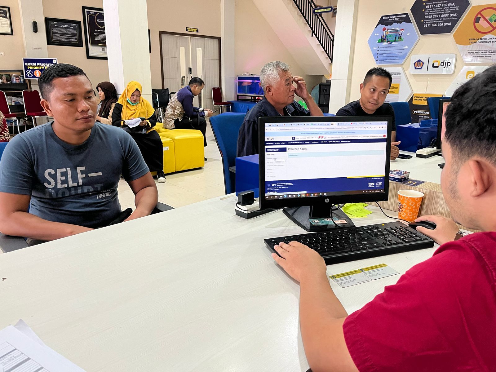 Kantor Pelayanan Pajak (KPP) Pratama Sintang memberikan konsultasi kepada wajib pajak mengenai tata cara pengajuan Konfirmasi Status Wajib Pajak (KSWP) melalui aplikasi Coretax DJP di Loket Helpdesk KPP Pratama Sintang, Kabupaten Sintang (Kamis, 13/3). Dengan menggunakan aplikasi Coretax DJP, wajib pajak dapat mengajukan permohonan KSWP dengan lebih mudah dan cepat.