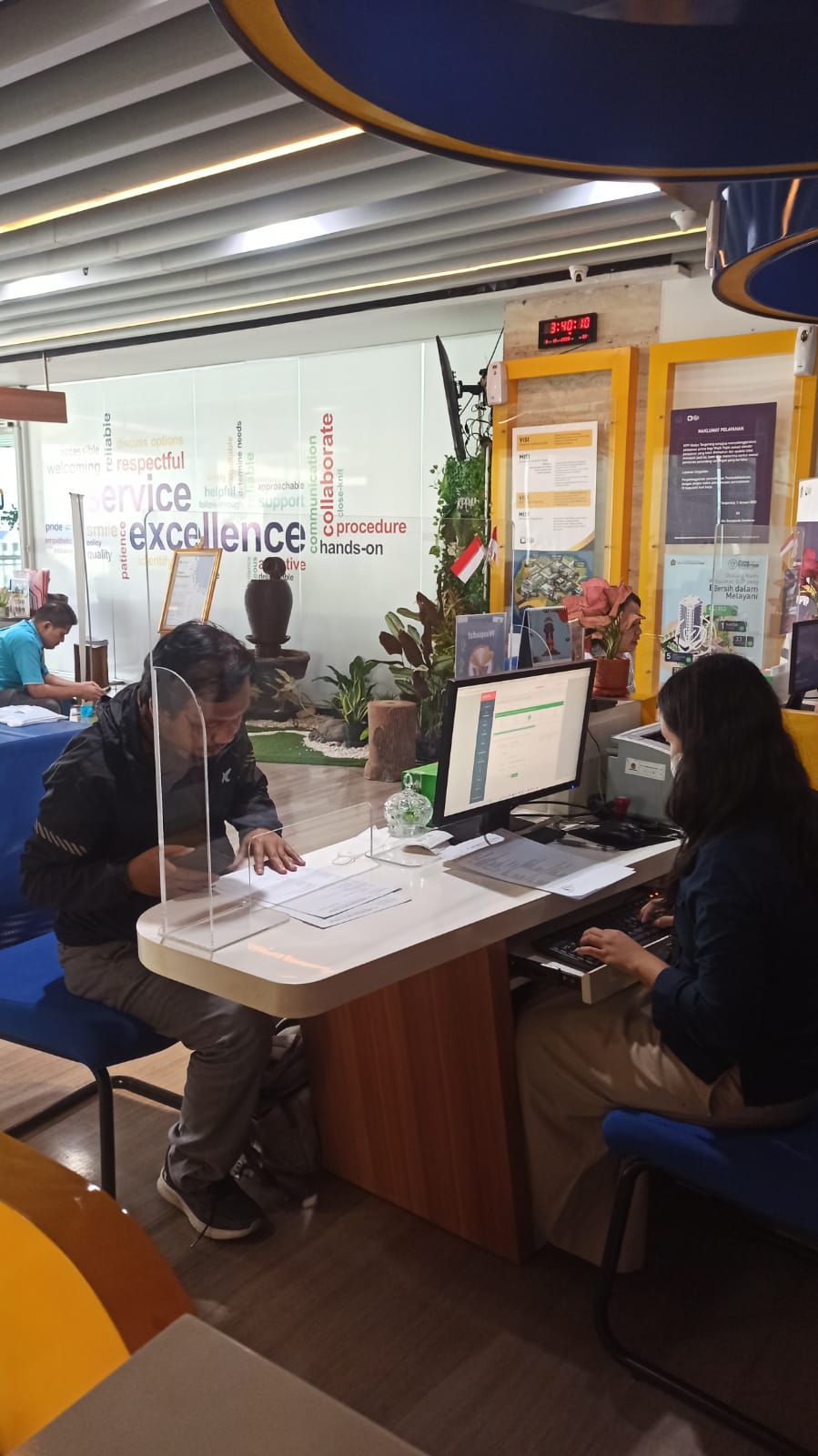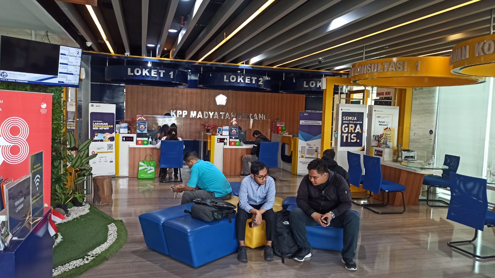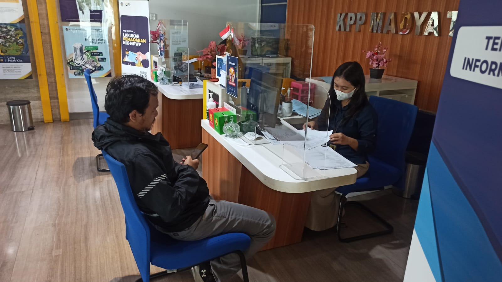 Wajib pajak mendatangi Kantor Pelayanan Pajak (KPP) Madya Tangerang mencari solusi atas kesalahan input data pembuatan e-Billing kepada petugas Tempat Pelayanan Terpadu (TPT) KPP Madya Tangerang, Gedung Menara Top Food, Alam Sutera, Jalan Jalur Sutera Barat No.3, RT.003/RW.006, Panunggangan Timur, Pinang, Kota Tangerang, Banten (Rabu, 4/10).