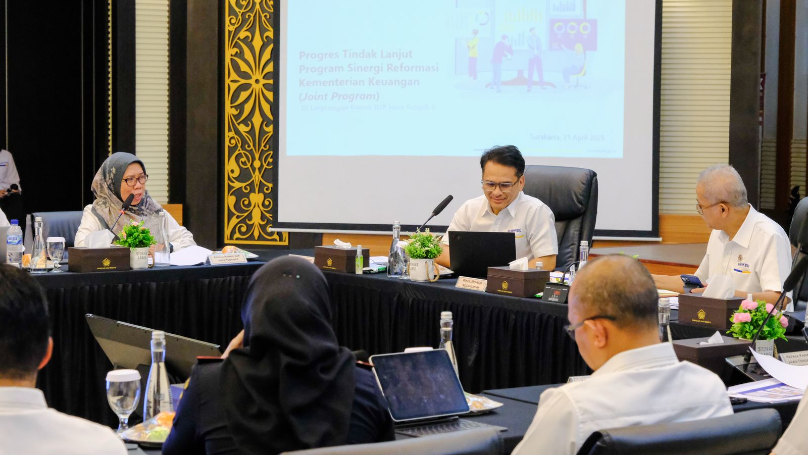 Wakil Menteri Keuangan (Wamenkeu) Republik Indonesia, Anggito Abimanyu, melakukan kunjungan kerja ke Kantor Wilayah Direktorat Jenderal Pajak (Kanwil DJP) Jawa Tengah II untuk memantau dan mengevaluasi pelaksanaan Joint Program Sinergi Reformasi Kementerian Keuangan antara DJP dan Direktorat Jenderal Bea dan Cukai (DJBC), khususnya regional Jawa Tengah dan DIY di Kota Surakarta (Senin, 21/4).