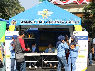 Kantor Wilayah DJP Jakarta Barat berkolaborasi dengan KPP Pratama Jakarta Palmerah memberikan pelayanan Pojok Pajak dalam acara Hari Bebas Kendaraan Bermotor Jakarta Barat (Minggu, 25/8). Kegiatan dilaksanakan mulai pukul 06.00 s.d. 10.00 WIB. Wajib pajak menyambut positif kegiatan yang dilaksanakan di Jalan Gajah Mada Jakarta Barat ini. Layanan yang diberikan antara lain: Konsultasi Perpajakan, Cetak Ulang Kartu NPWP, Asistensi e-Filing, e-Billing.