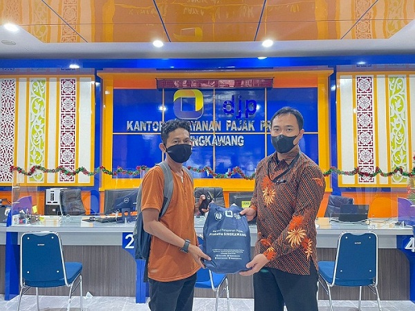 Kantor Pelayanan Pajak (KPP) Pratama Singkawang membagikan suvenir kepada wajib pajak di tempat pelayanan terpadu (TPT) KPP Pratama Singkawang (Selasa, 4/1). Pemberian suvenir tersebut merupakan bentuk apresiasi KPP Pratama Singkawang kepada wajib pajak yang telah melaporkan SPT Tahunan PPh tahun pajak 2021 di awal waktu.