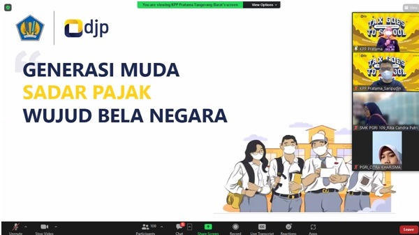 Kantor Pelayanan Pajak (KPP) Pratama Tangerang Barat menggelar Tax Goes to School (TGTS) secara daring melalui aplikasi zoom cloud meeting langsung dari ruang aula KPP Pratama Tangerang Barat, Kota Tangerang (Selasa, 26/7).