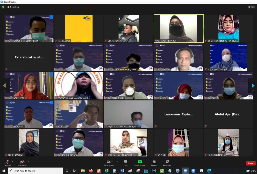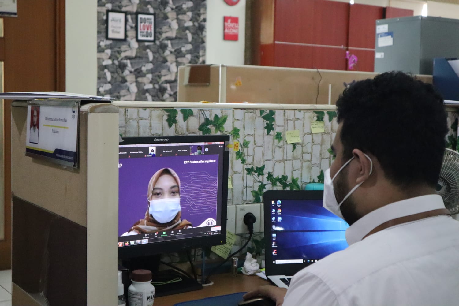 KPP Pratama Serang Barat menggelar acara dengar pendapat (public hearing) Standar Pelayanan melalui aplikasi Zoom Cloud Meeting yang dihadiri oleh tim Evaluasi Unit Pelayanan Publik KPP Pratama Serang Barat dan 39 perwakilan wajib pajak dari tokoh masyarakat, Lembaga Swadaya Masyarakat (LSM), akademisi dan kalangan pengusaha di kota Serang, Banten (Senin, 19/7).