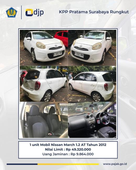 Berdasarkan Peraturan Pemerintah Nomor 135 Tahun 2000 tentang Tata Cara Penyitaan dalam Rangka Penagihan Pajak dengan Surat Paksa dan Peraturan Menteri Keuangan Nomor 213/PMK.06/2020 tentang Petunjuk Pelaksanaan Lelang, KPP Pratama Surabaya Rungkut melalui KPKNL Surabaya akan menyelenggarakan penjualan dimuka umum atau lelang barang sitaan pajak sebagai berikut: