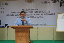 Surakarta, 23 Februari 2022 – Kantor Pelayanan Pajak (KPP) Madya Surakarta melaksanakan pencanangan pembangunan Zona Integritas menuju Wilayah Bebas dari Korupsi (ZI-WBK) di Aula KPP Madya Surakarta. Kegiatan ini dilaksanakan secara hybrid dengan tetap menerapkan protokol kesehatan. Peserta yang hadir terdiri dari para stakeholder, pegawai, dan perwakilan wajib pajak.