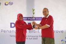 Acara dilanjutkan dengan penyerahan bibit mangrove secara simbolis dari staf ahli kepada Kepala Kanwil DJP Banten yang kemudian melakukan penanaman pohon mangrove dengan langsung terjun ke lahan konservasi hutan mangrove Ketapang Urban Agriculture. Yoyok beserta rombongan kemudian melanjutkan perjalanan ke tambak udang di wilayah hutan konservasi.