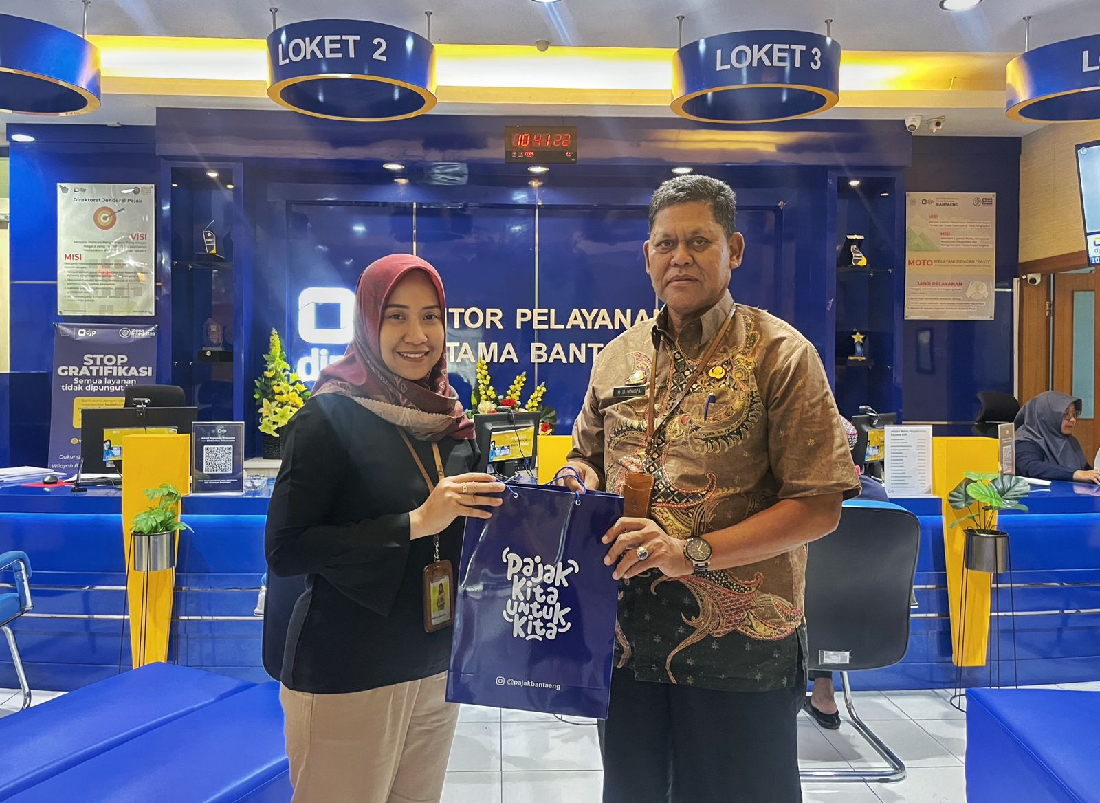 Kantor Pelayanan Pajak (KPP) Pratama Bantaeng menerima kunjungan dari Kepala Badan Kepegawaian dan Pengembangan Sumber Daya Manusia (BKPSDM) Kabupaten Bantaeng Ir. Dimiati Nongpa, M.Pi yang akan menyampaikan Surat Pemberitahuan (SPT) Tahunan secara langsung di Tempat Pelayanan Terpadu (TPT) KPP Pratama Bantaeng, Jalan Andi Mannapiang, Lamalaka, Kecamatan Bantaeng, Kabupaten Bantaeng (Kamis, 18/1).
