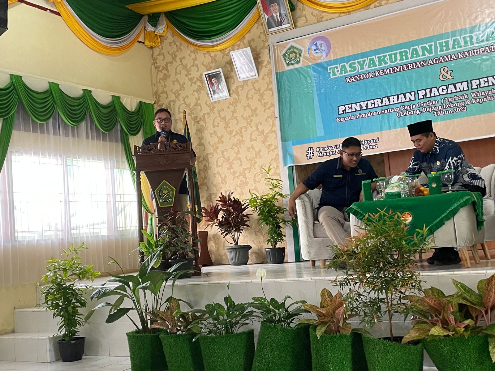 Kepala Kantor Kemenag Kepahiang Drs. Albahri, M.Si., mengucapkan terima kasih atas penghargaan yang diberikan oleh KPP Pratama Curup dan diharapakan penghargaan ini dapat memberikan sumber motivasi kepada Kemenag Kepahiang.