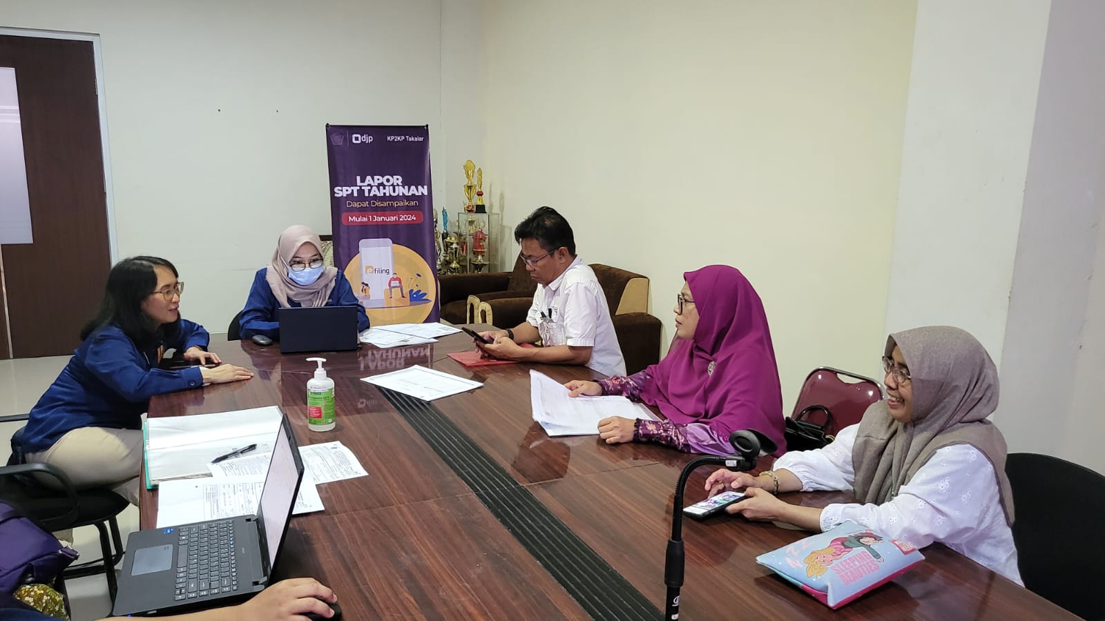 Kantor Pelayanan, Penyuluhan, dan Konsultasi Perpajakan (KP2KP) Takalar melakukan asistensi pelaporan SPT Tahunan di Ruang Aula Rumah Sakit Umum Daerah (RSUD) H Padjonga yang beralamat di Jalan H. Ince Husain Dg Parani Nomor 1, Kelurahan Sombala Bella, Kecamatan Pattallassang, Kabupaten Takalar. Kegiatan asistensi pelaporan Surat Pemberitahuan (SPT) Tahunan kali ini diikuti oleh para dokter spesialis yang bertugas di RSUD H Padjonga (Rabu, 21/2).