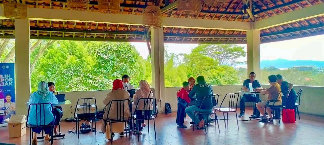 Kantor Pelayanan Pajak (KPP) Pratama Cimahi membuka layanan di luar kantor asistensi pelaporan SPT Tahunan di Bale Pare, Kota Baru Parahyangan, Kabupaten Bandung Barat, (Kamis, 7/3).