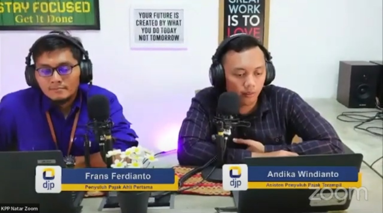 Kelas pajak dibawakan langsung oleh Tim Penyuluh Pajak KPP Pratama Natar, yaitu Andika Windianto sebagai moderator dan Frans Ferdianto sebagai narasumber. Frans Ferdianto membahas mengenai kewajiban perpajakan Wajib Pajak Badan serta ketentuan dan tata cara pelaporan SPT Tahunan PPh Badan secara online melalui laman www.pajak.go.id.