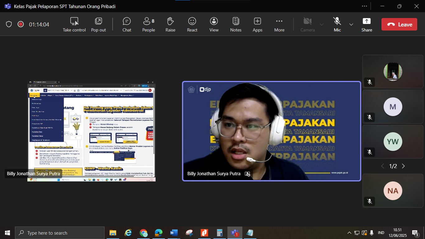 Tidak hanya itu, Billy turut menyampaikan materi terkait pendaftaran akun Coretax dengan melakukan praktik pendaftaran akun Coretax secara langsung di akhir sosialisasi.