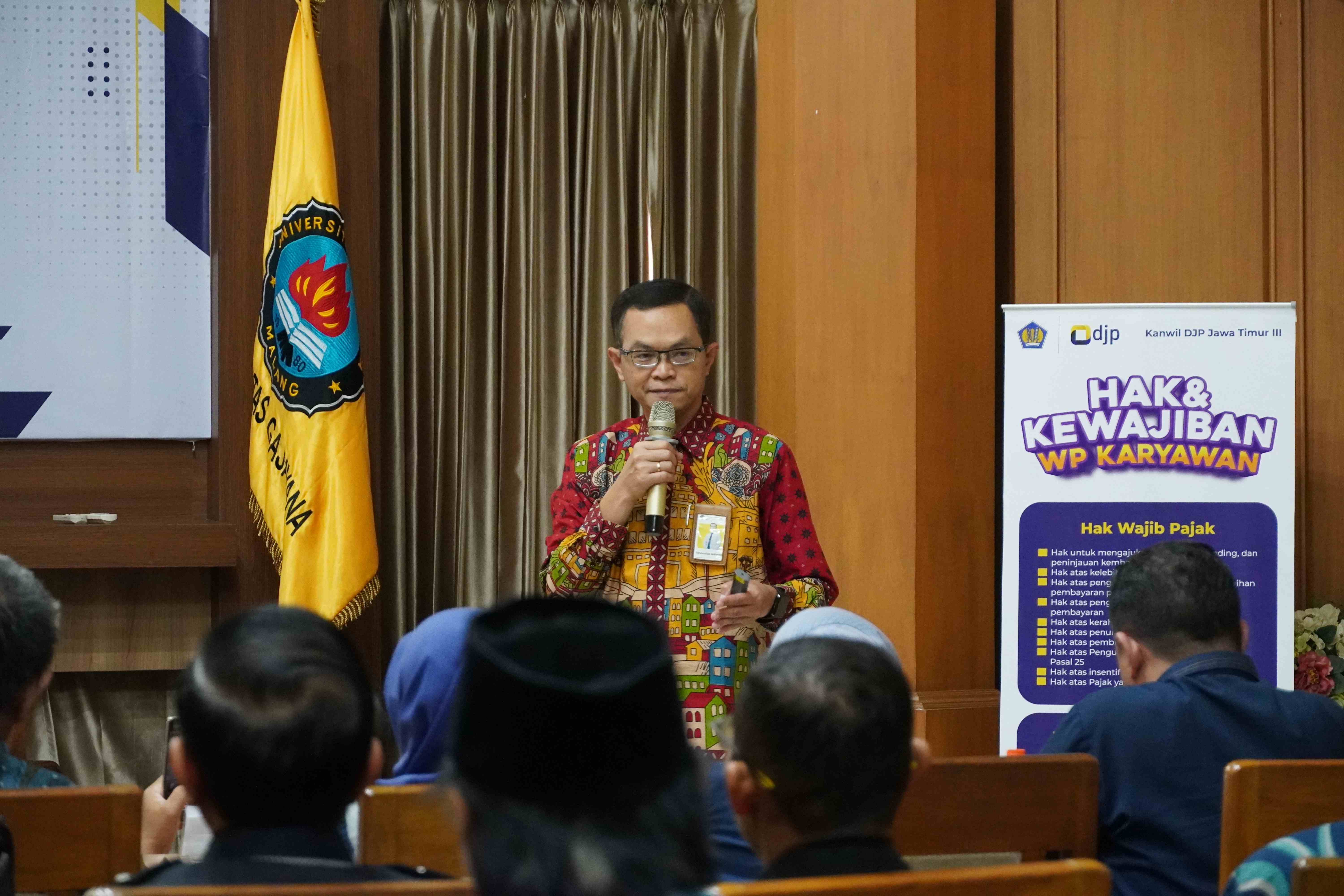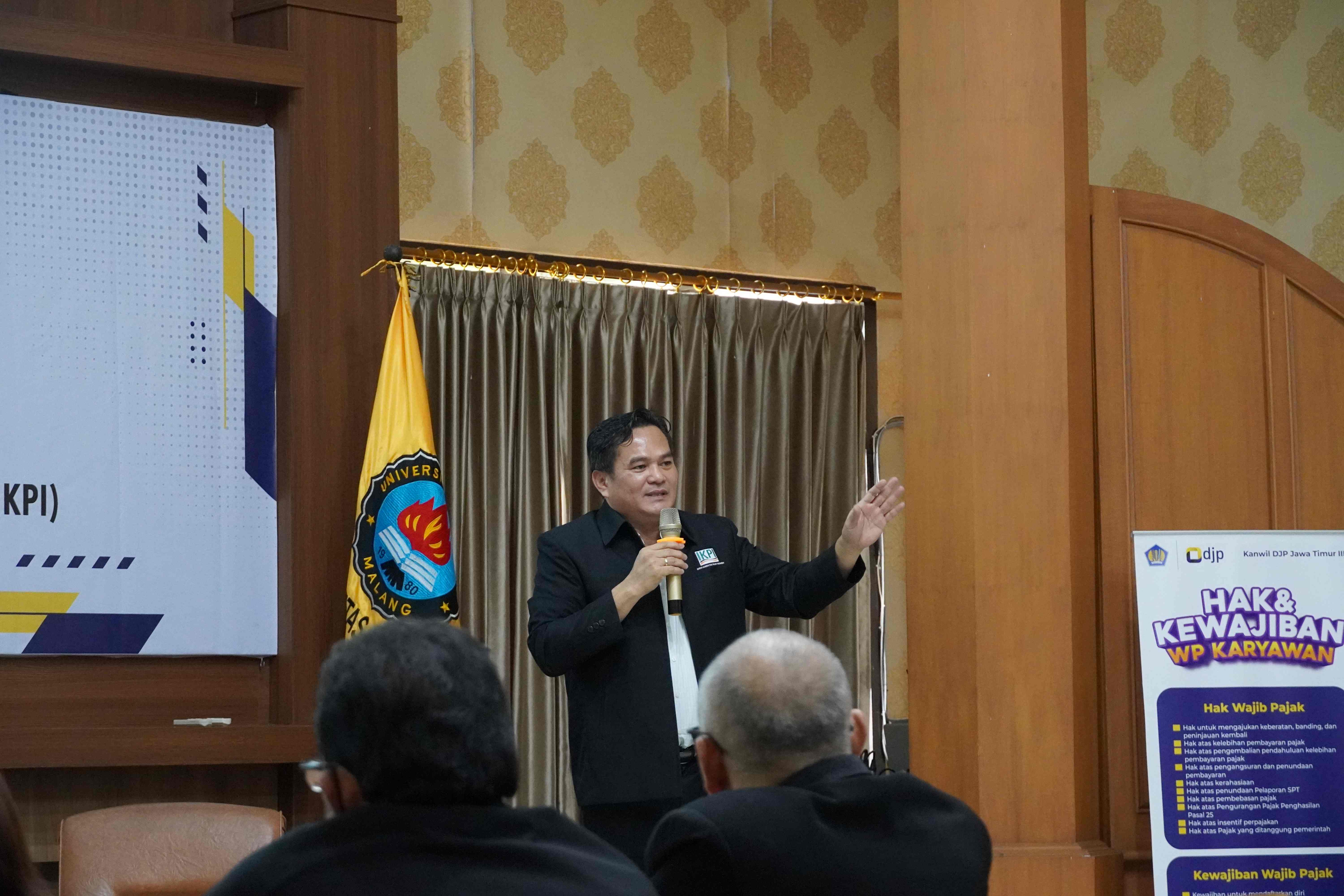 Dalam kuliah umum yang digelar bersama Universitas Gajayana Malang dan Ikatan Konsultan Pajak Indonesia (IKPI), Kepala Bidang Penyuluhan, Pelayanan, dan Hubungan Masyarakat Kantor Wilayah (Kanwil) DJP Jawa Timur III, Vincentius Sukamto, memaparkan strategi menghadapi tantangan pemajakan di era digital, mulai dari regulasi perdagangan elektronik hingga pemanfaatan kecerdasan buatan (AI) di Kota Malang (Kamis, 24/6).