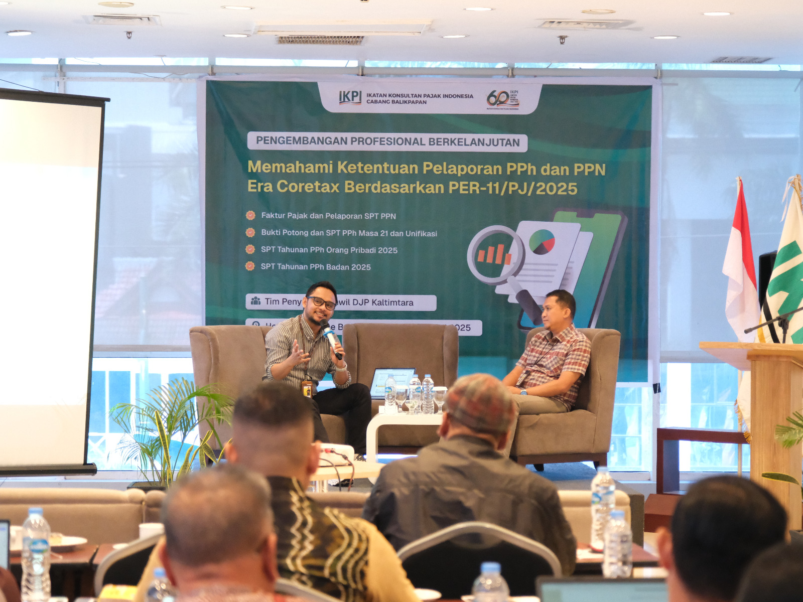 Kantor Wilayah Direktorat Jenderal Pajak Kalimantan Timur dan Utara (Kanwil DJP Kaltimtara) menghadiri undangan dari Ikatan Konsultan Pajak Indonesia (IKPI) Balikpapan sebagai narasumber dalam kegiatan sosialisasi PER-11/PJ/2025 yang diselenggarakan di Hotel Whiz Prime Balikpapan, Kota Balikpapan (Kamis, 24/7).