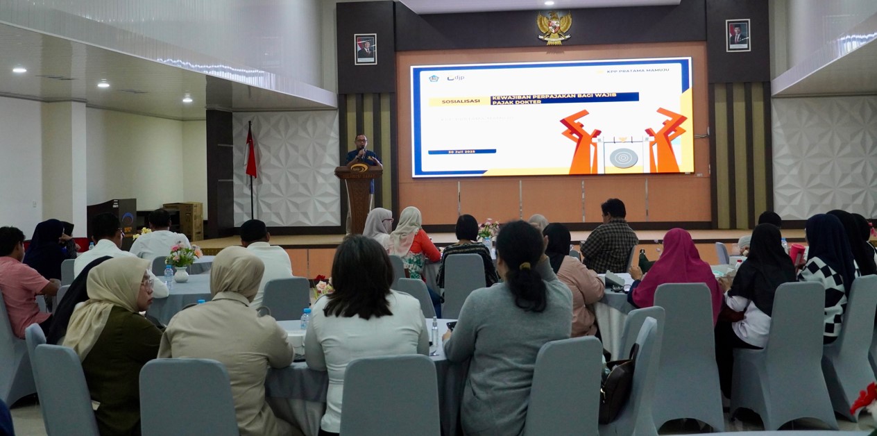 Kantor Pelayanan Pajak (KPP) Pratama Mamuju menyelenggarakan kegiatan sosialisasi bertajuk Edukasi Perpajakan bagi Wajib Pajak Dokter di Kabupaten Mamuju (Rabu,30/7). Kegiatan ini bertujuan memberikan pemahaman mendalam mengenai hak dan kewajiban perpajakan, termasuk penggunaan aplikasi Coretax DJP, khususnya bagi para wajib pajak yang berprofesi sebagai dokter.