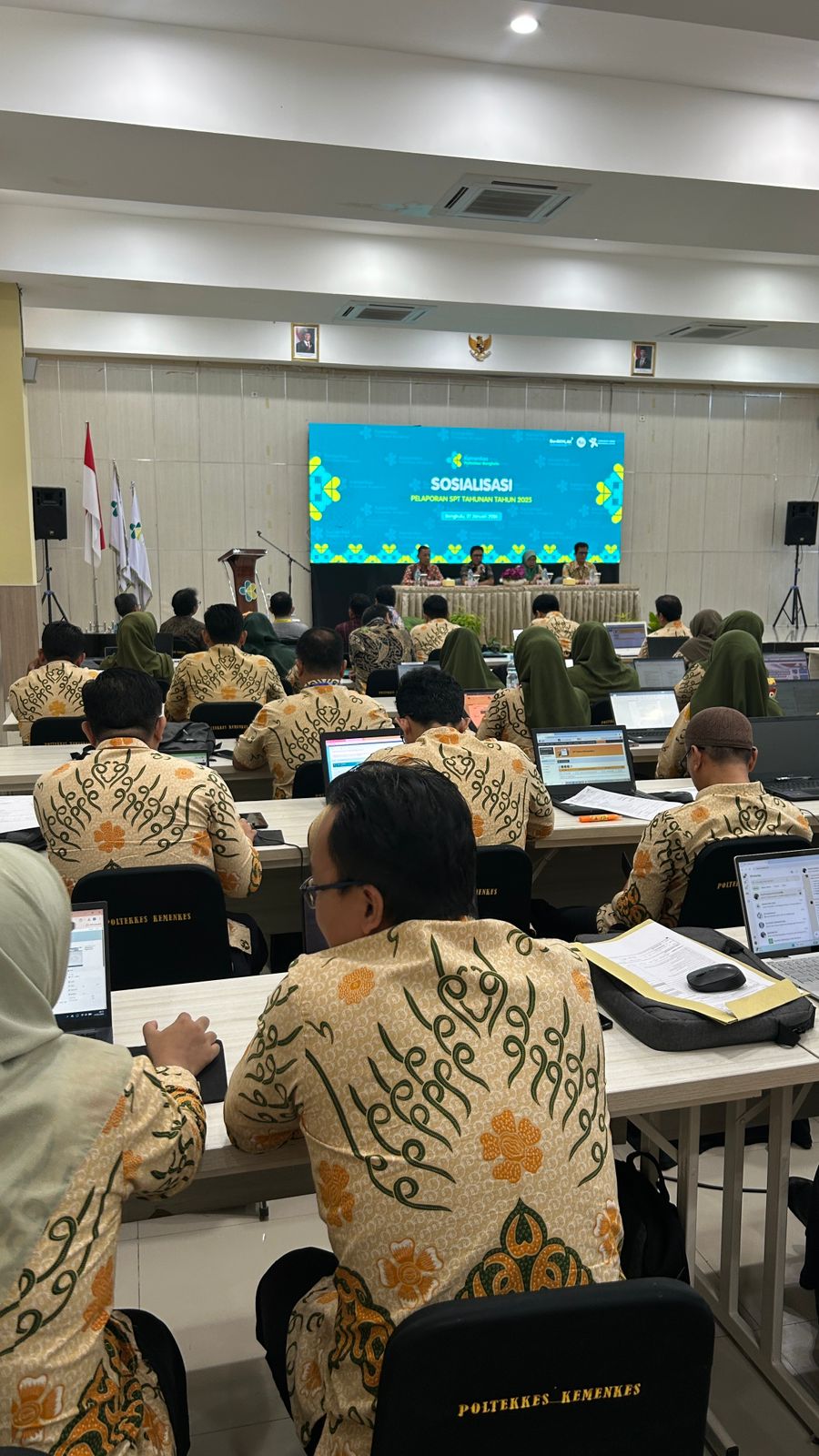 Acara sosialisasi dibuka dengan sambutan dari Kepala Poltekkes Bengkulu yang dilanjutkan oleh sambutan Kepala KPP Pratama Bengkulu Dua. Kegiatan ini bertujuan untuk meningkatkan pemahaman dan kepatuhan pegawai dalam memenuhi kewajiban pelaporan SPT Tahunan secara tepat waktu.