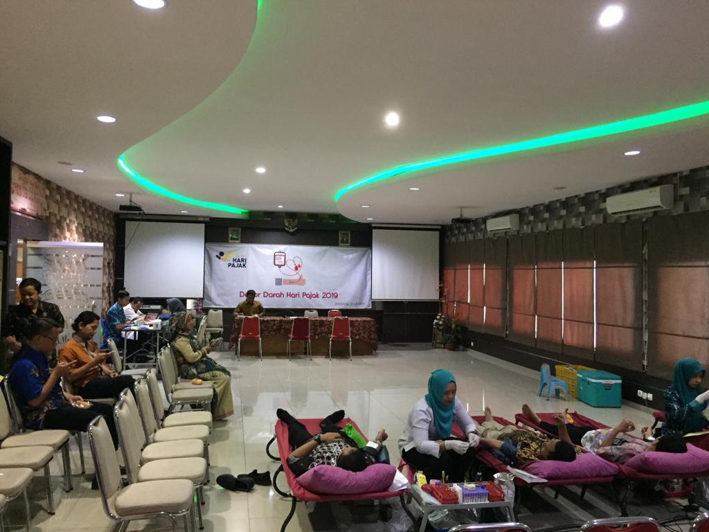Banyak bentuk kontribusi sosial yang dapat disumbangkan seseorang kepada sesamanya, salah satunya adalah dengan mendonorkan darah. Kegiatan donor darah merupakan salah satu rangkaian kegiatan dalam Peringatan Hari Pajak tahun 2019. Kanwil DJP Jawa Tengah I menyelenggarakan kegiatan donor darah bekerja sama dengan Palang Merah Indonesia (PMI) Kota Semarang di Aula KPP Pratama Semarang Barat (Jumat, 12/7).