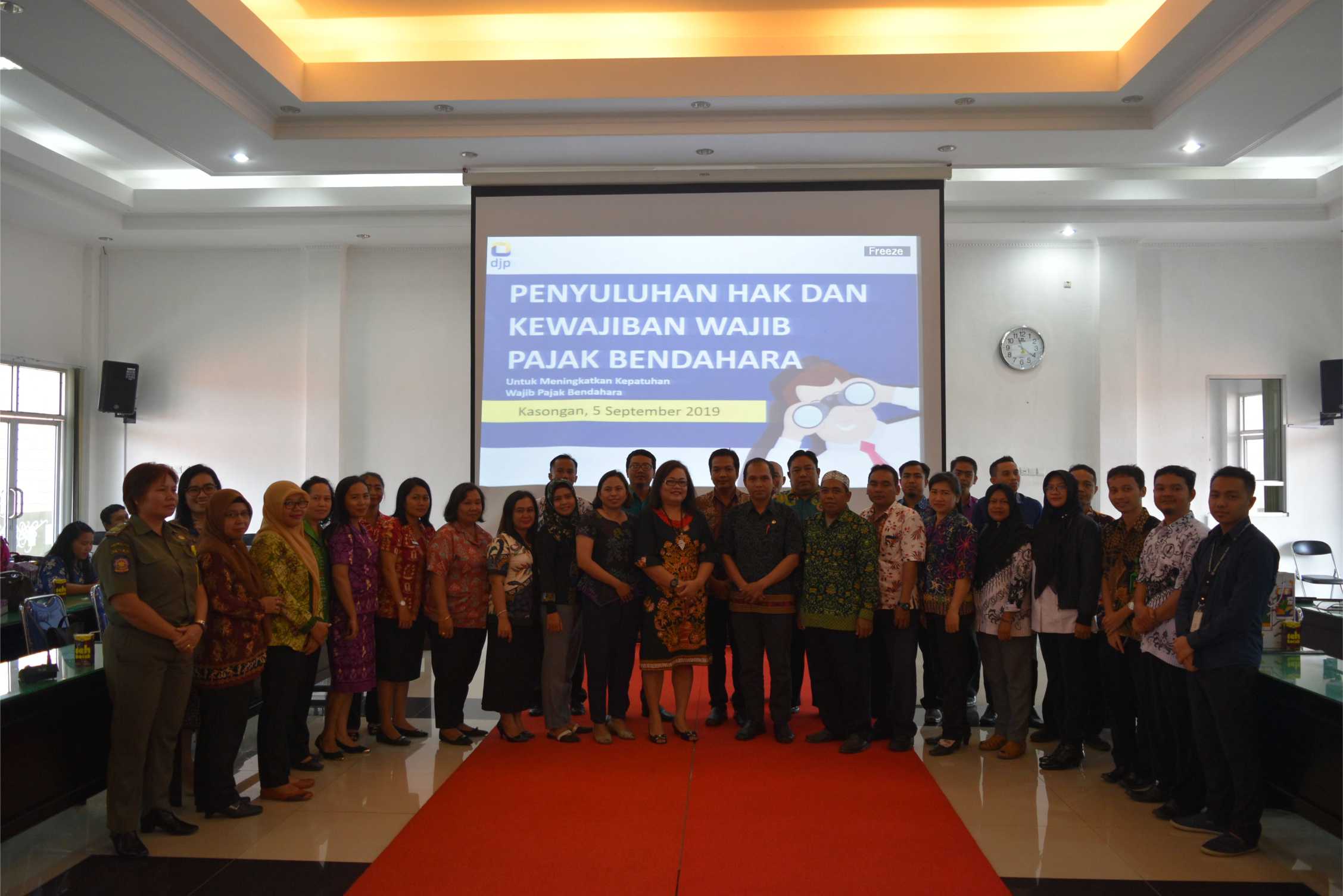 Untuk meningkatkan kepatuhan perpajakan Wajib Pajak Bendaharawan, Kantor Pelayanan Penyuluhan dan Konsultasi Perpajakan (KP2KP) Kasongan menyelenggarakan penyuluhan Hak dan Kewajiban Perpajakan WP Bendaharawan di Aula Bapelitbang Lantai 2 Kasongan (Kamis, 5/9). Ada banyak hal dasar perpajakan yang di bahas dalam acara tersebut, seperti: Pendaftaran Nomor Pokok Wajib Pajak (NPWP) Bendaharawan, Proses penyetoran pajak pada transaksi bendahara, serta pelaporan Surat Pemberitahuan (SPT) Massa.