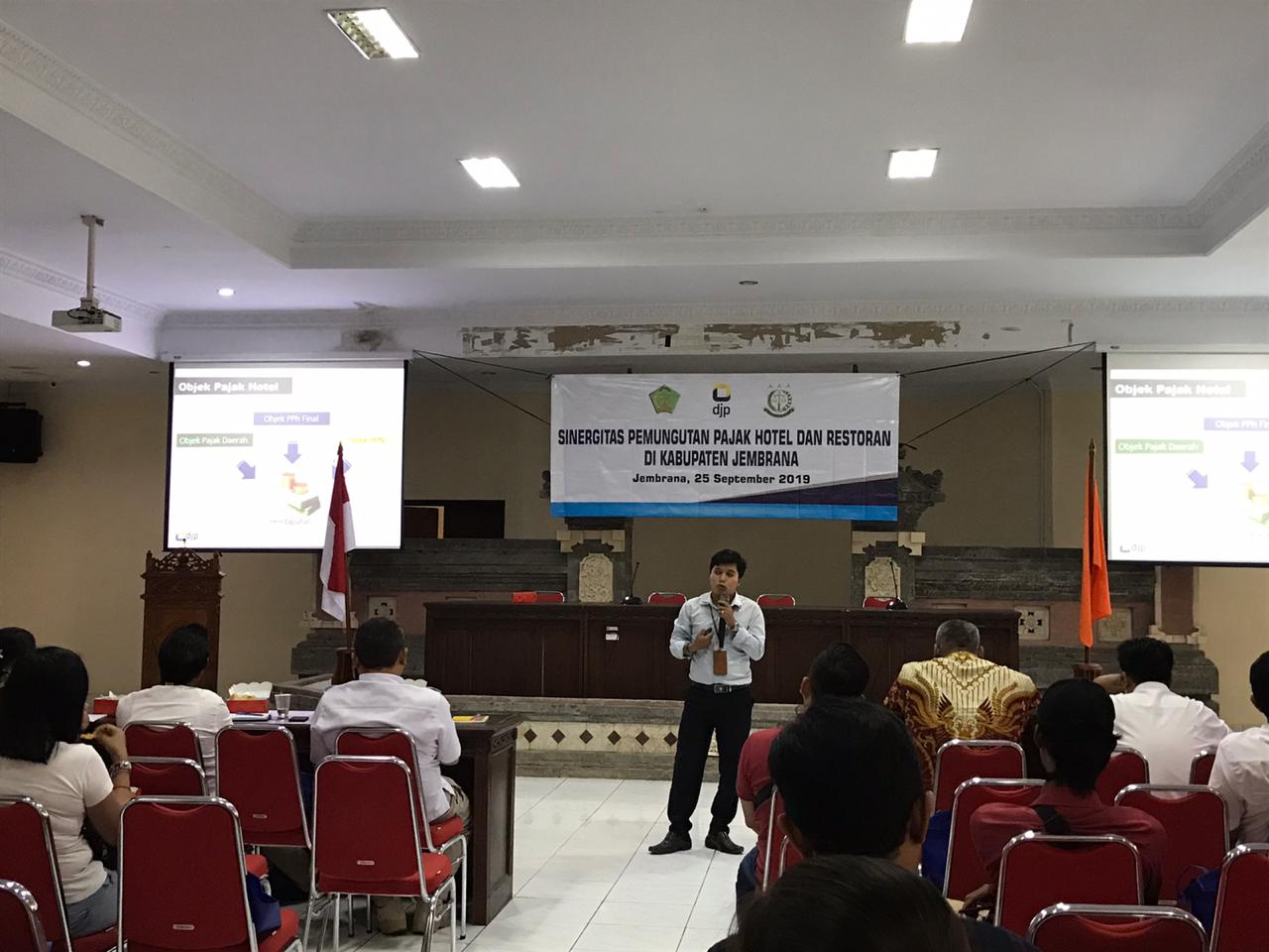 KP2KP Negara bekerjasama dengan BPKAD Kabupaten Jembrana dan Kejaksaan Negeri Jembrana mengadakan acara bertajuk "Sinergitas Pemungutan Pajak Hotel dan Restoran di Kabupaten Jembrana" yang bertempat di Aula Jimbarwana, Jembrana (Rabu, 25/9). Kegiatan ini dihadiri oleh pelaku usaha Hotel dan Restoran yang berada di wilayah Kabupaten Jembrana. Acara ini bertujuan untuk menambah pengetahuan mengenai kewajiban pajak pusat maupun daerah bagi pelaku usaha Hotel dan Restoran.