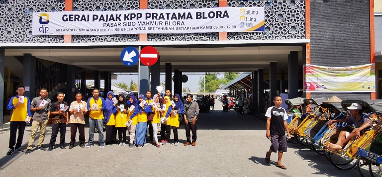 Pembukaan Gerai Pajak di Pasar Sido Makmur Blora telah diresmikan oleh Kantor Pelayanan Pajak (KPP) Pratama Blora (Kamis, 12/9). Pasar Sido Makmur dipilih menjadi tempat dibukanya Gerai Pajak karena didalamnya terdapat kurang lebih 2000 pedagang yang setiap hari berjualan. Hal pertama yang sering membuat pedagang kesulitan untuk melakukan kewajiban perpajakannya adalah tidak memungkinkannya untuk mereka meninggalkan barang dagangan karena belum adanya pegawai toko.