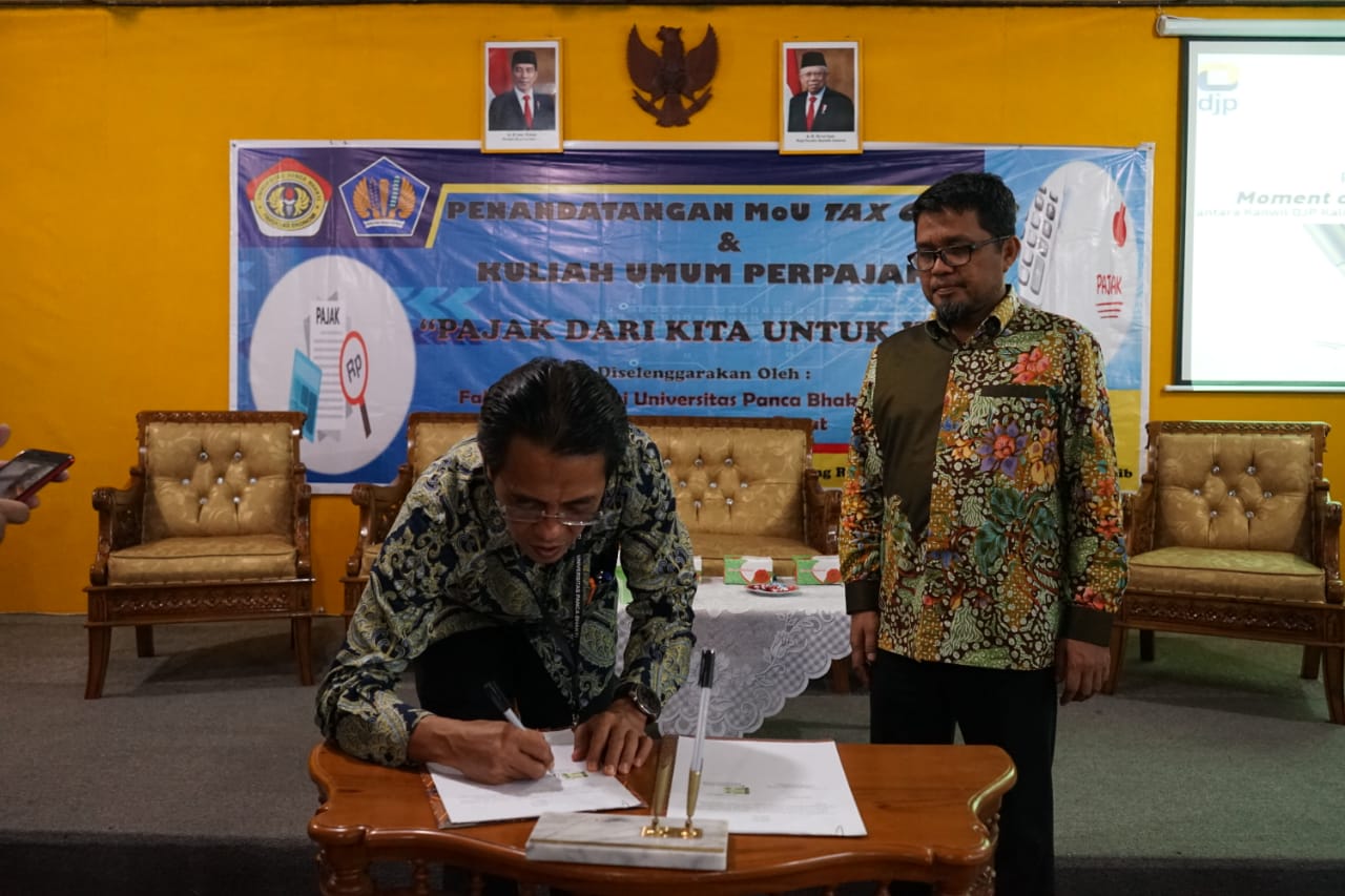 Kanwil DJP Kalimantan Barat melaksanakan penandatanganan Kesepakatan Bersama dengan Universitas Panca Bhakti tentang Tax Center Universitas Panca Bhakti di Ruang Aula Rektorat Universitas Panca Bhakti, Pontianak (Selasa, 10/12).
